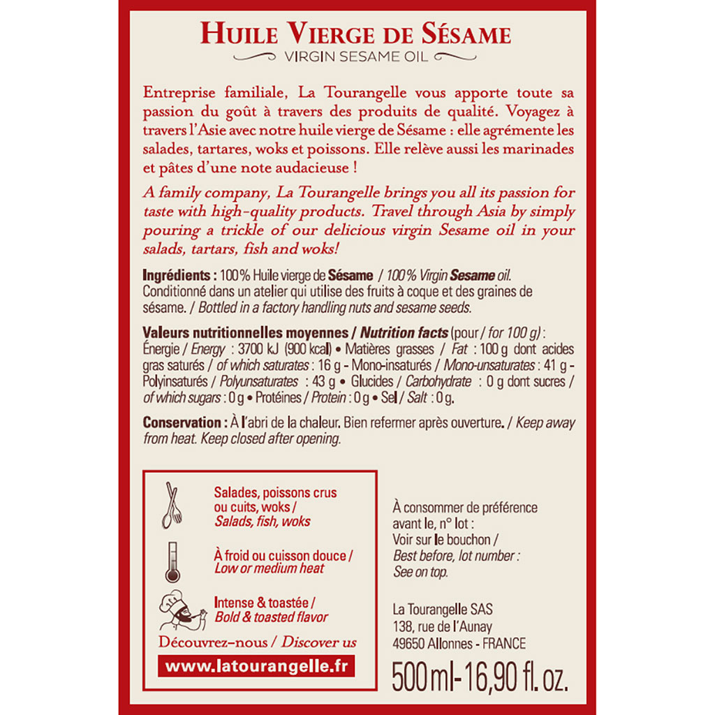 N'attendez plus pour sublimer vos plats et éveiller vos papilles avec l'Huile vierge de sésame toastée 500ml de La Tourangelle.