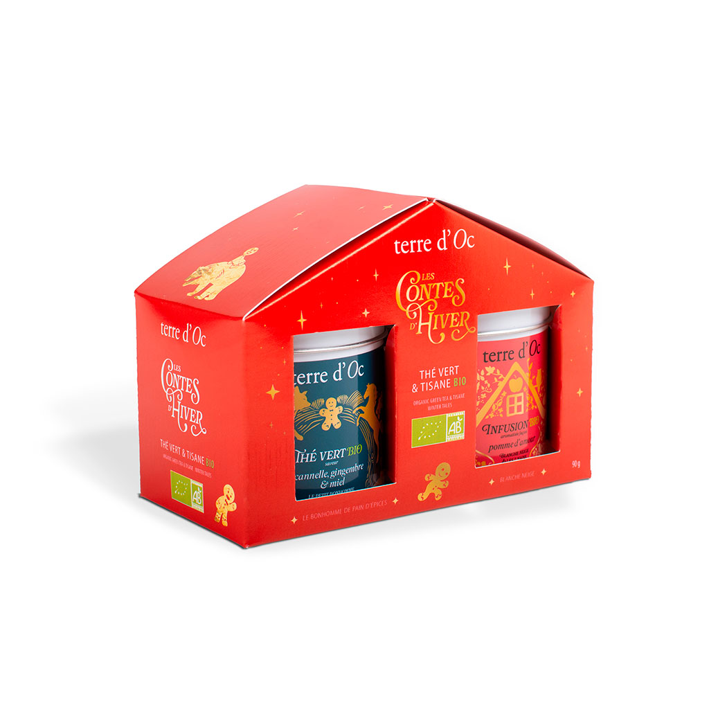 05 56 69 68 67-contact@fabriquedestyles.frCoffret cadeau thé vert et infusion bio gingembre et pomme d'amour