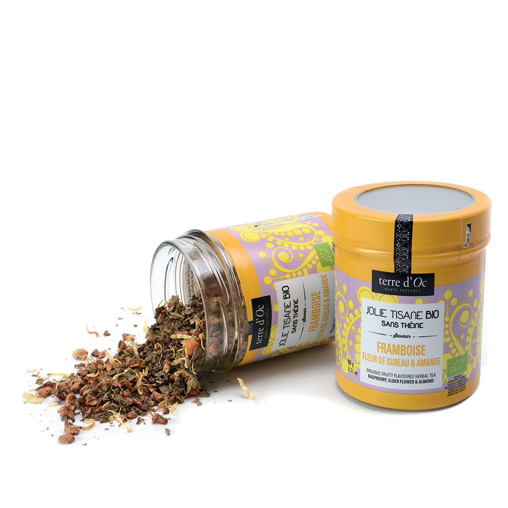 05 56 69 68 67-contact@fabriquedestyles.frTisane framboise grenade sureau - pot métal - 70g ab