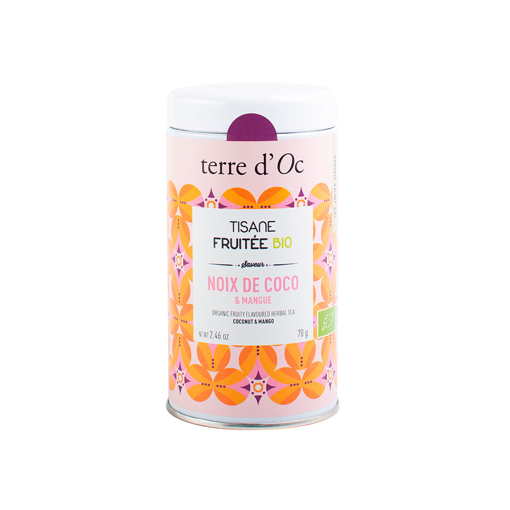 05 56 69 68 67-contact@fabriquedestyles.frTisane fruitée bio saveur noix de coco et mangue 70g