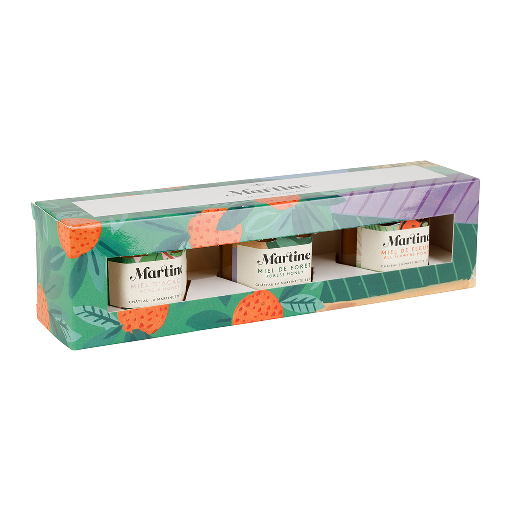 05 56 69 68 67-contact@fabriquedestyles.frCoffret de miel d'acacia, de fôret et toutes fleurs 3x60g