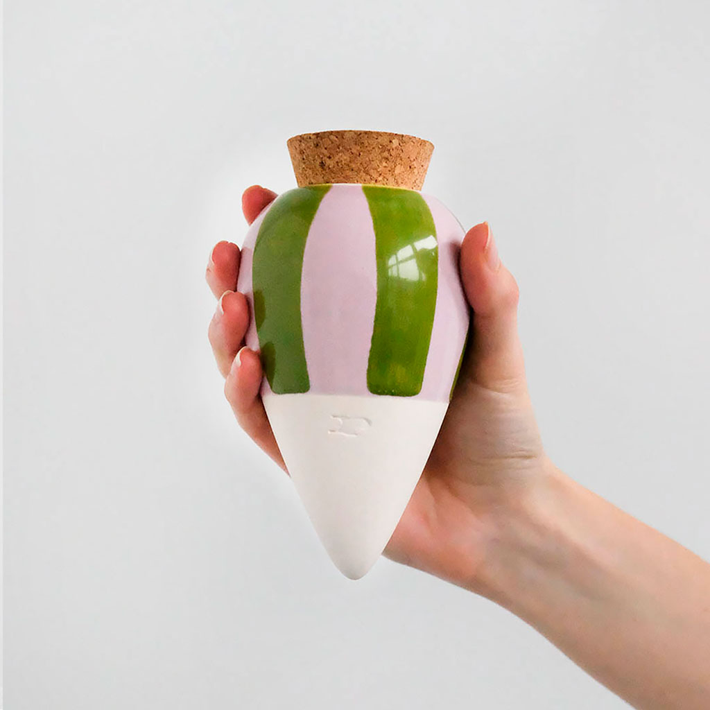 05 56 69 68 67-contact@fabriquedestyles.frDiffuseur d'eau olla hydratante - rayé vert et lilas 25cl