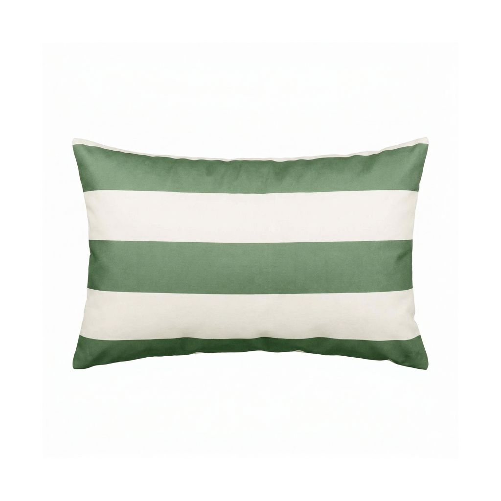 05 56 69 68 67-contact@fabriquedestyles.frHousse de coussin d'extérieur rayé amande et blanc 40x60cm - Riviera