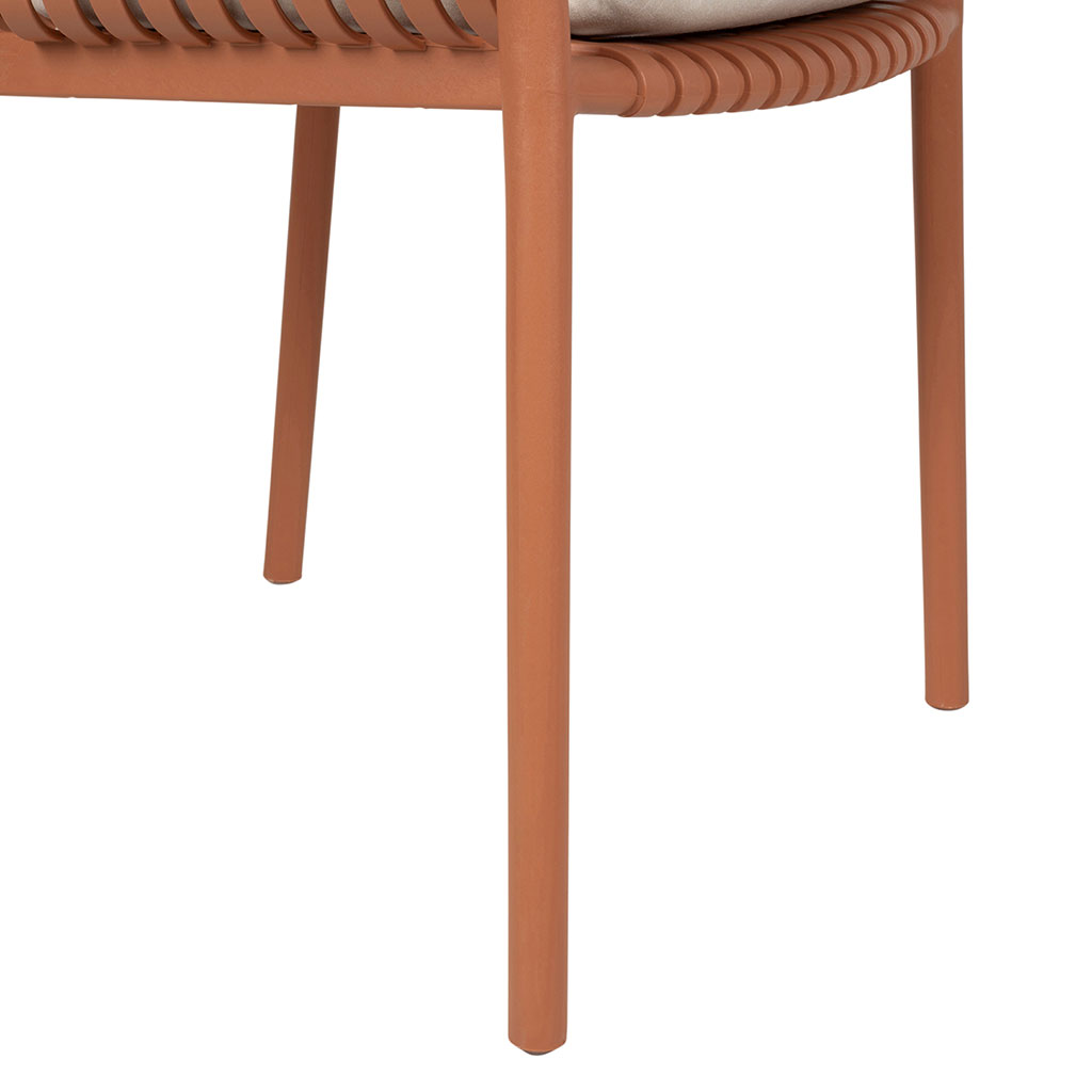 Découvrez le fauteuil extérieur Lumi en terracotta, un ajout élégant et moderne à votre espace extérieur.