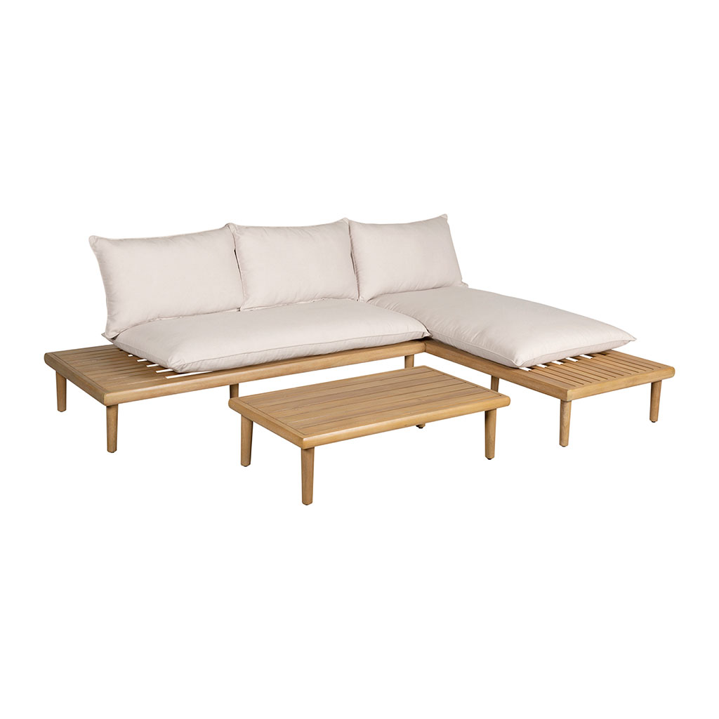 05 56 69 68 67-contact@fabriquedestyles.frSalon de jardin en acacia 3 places avec table écru - Cirina