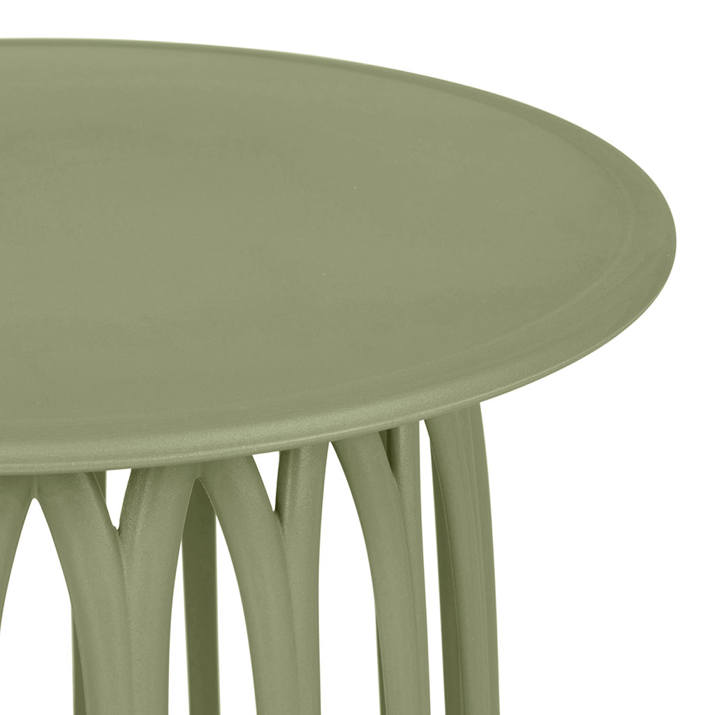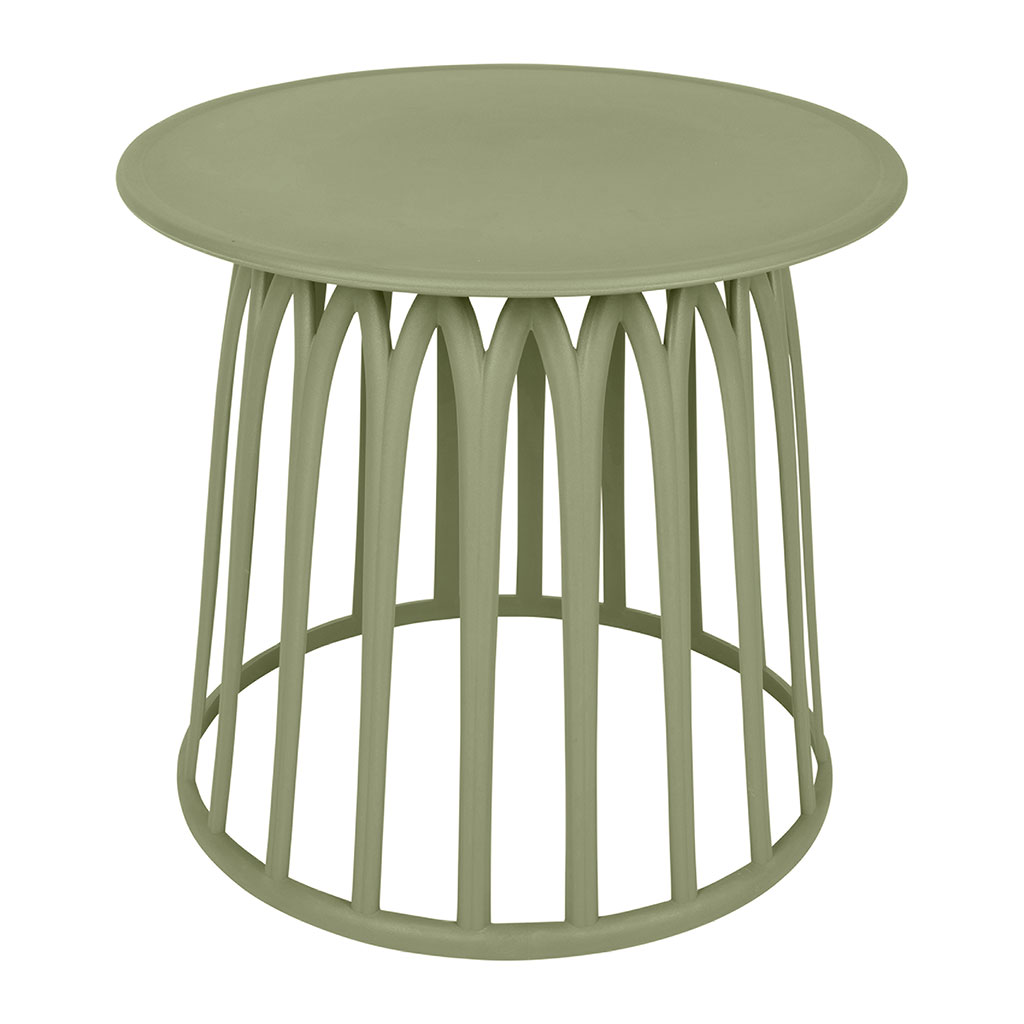 Transformez votre espace extérieur en un havre de détente avec cette table basse de jardin au design circulaire et à la teinte kaki subtile.