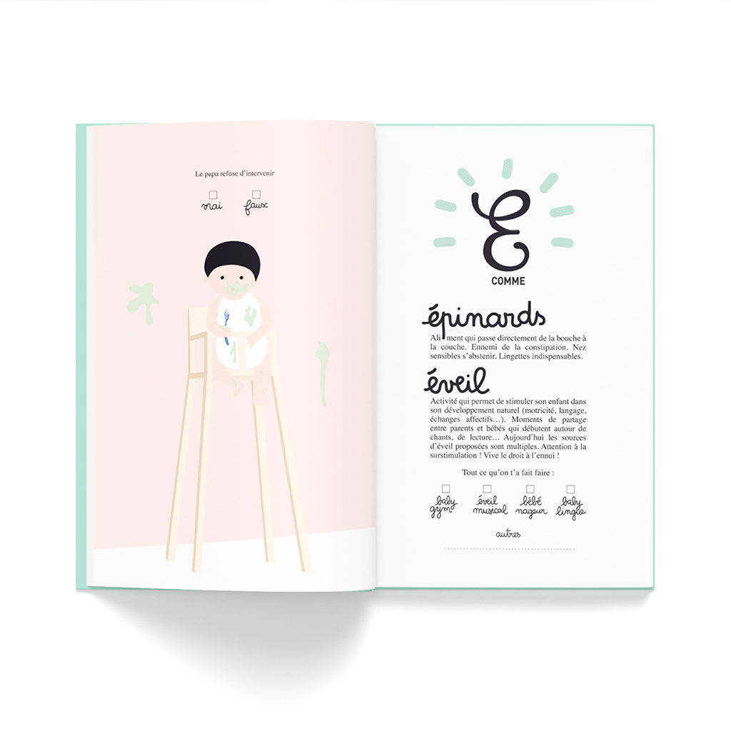 Un ton décalé et tendre pour prendre du recul sur les nuits sans sommeil, les grands-parents trop gentils et les lancés de purées.... 100 pages d'illustrations très graphiques.