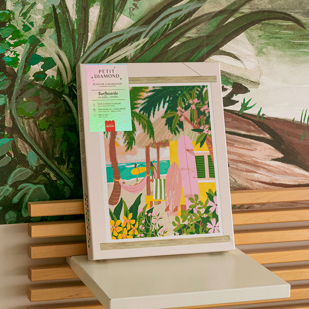 05 56 69 68 67-contact@fabriquedestyles.frCoffret diamond painting sur toile surfboards 30x40cm