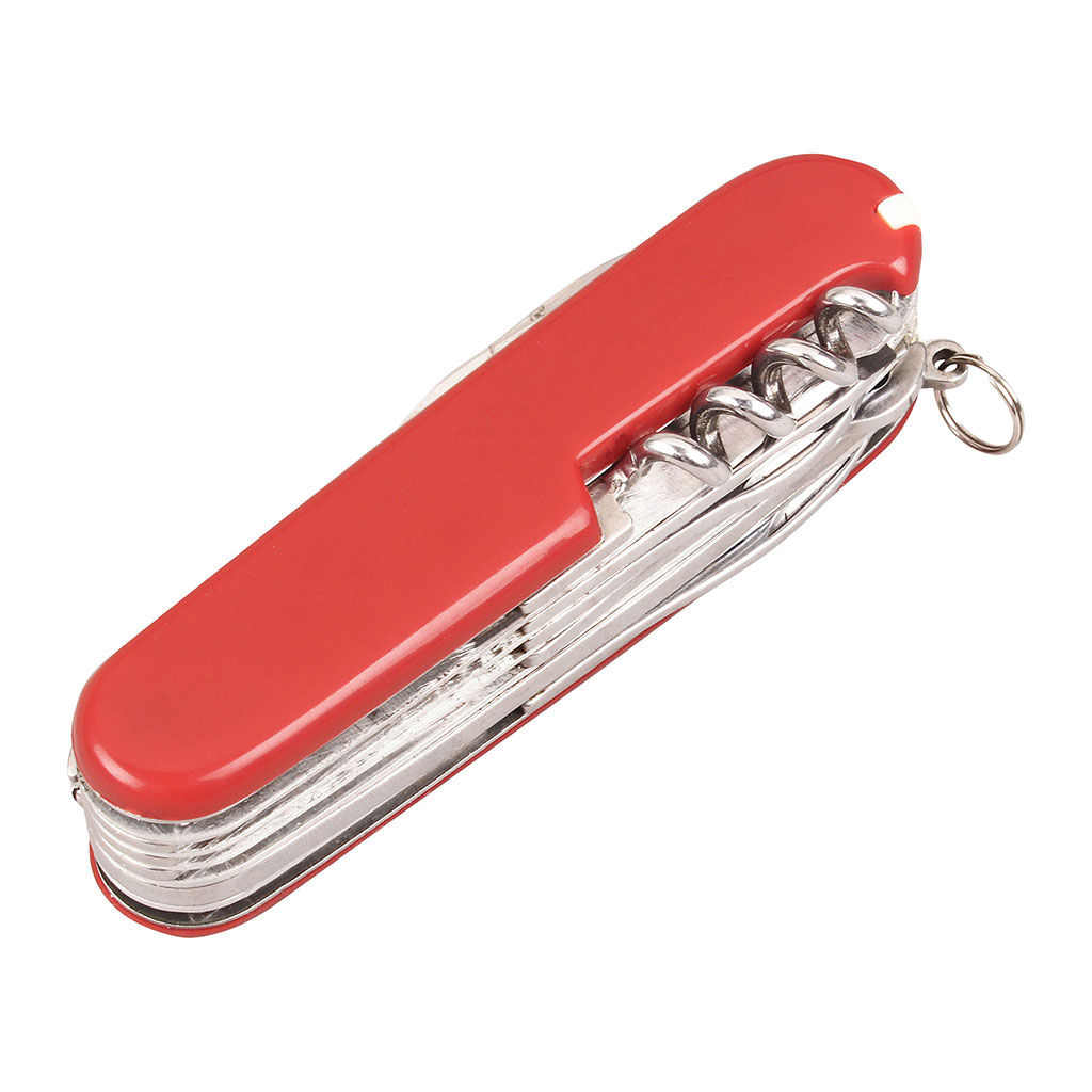Composants de fonction : Grande lame de couteau, Ouvre-boîte, Tire-bouchon, Crochet, Alêne, Grattoir, Petit tournevis plat, Tournevis plat & Ouvre-bouteille, Pince, Ciseaux, Scie, Lime à ongles, Petite lame de couteau, Pincettes & Cure-dents, Anneau