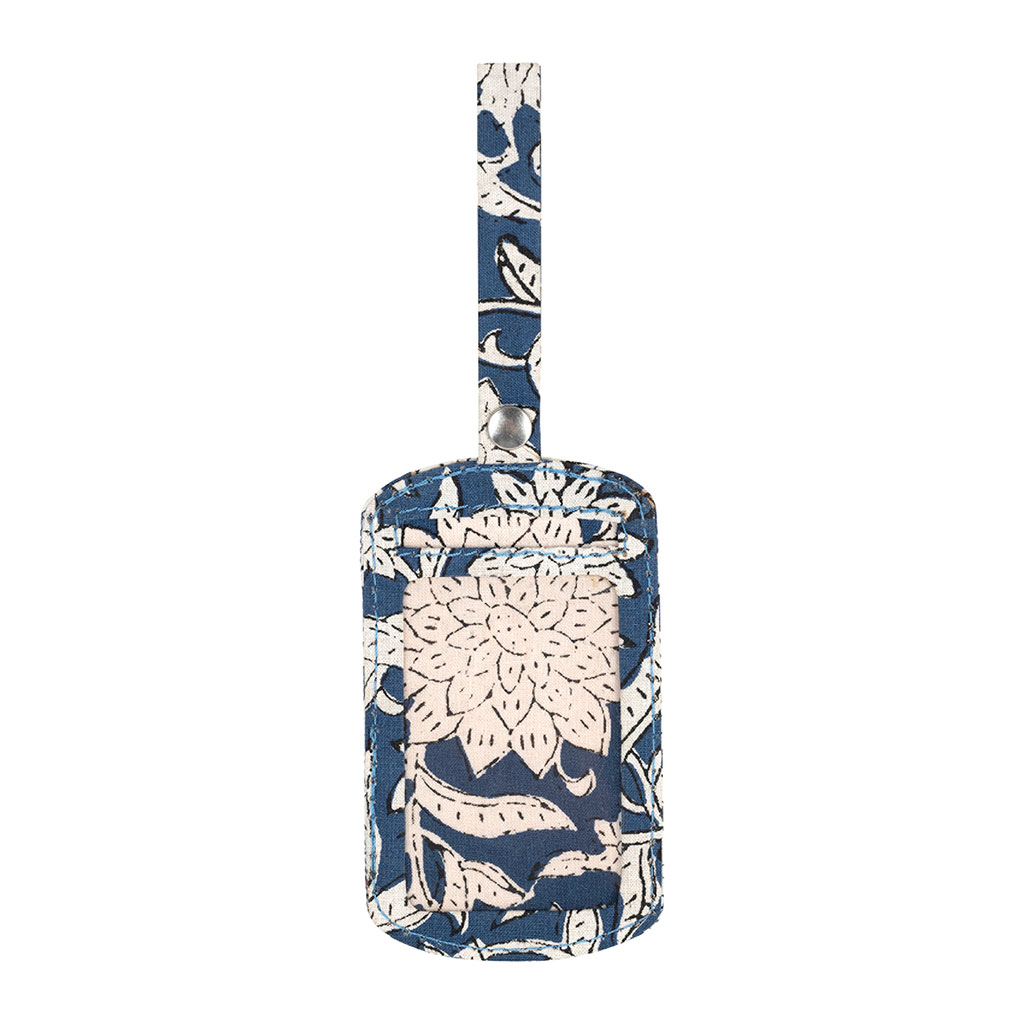 Découvrez notre étiquette bagage en coton bleu, Flaura, l'accessoire parfait pour personnaliser et reconnaître facilement vos valises lors de vos voyages.