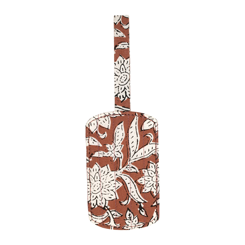 Découvrez notre étiquette bagage en coton rouge, Flaura, un accessoire indispensable pour tous vos voyages.