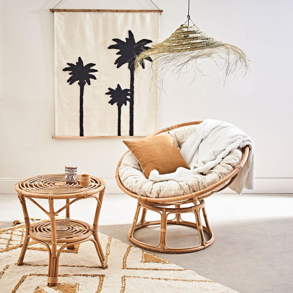Accrochée au plafond, cette suspension en osier est idéale pour les espaces de vie, les chambres à coucher ou les véranda.