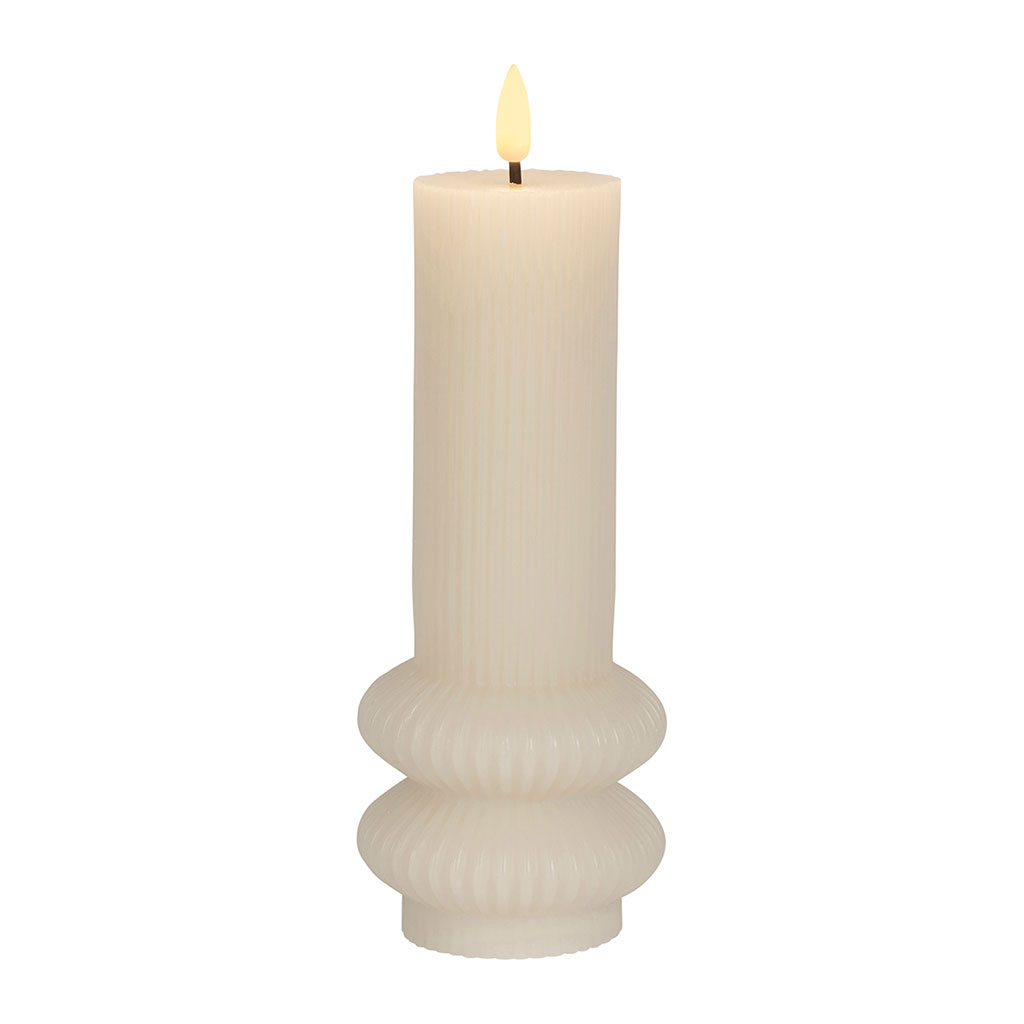Illuminez votre ambiance avec cette bougie LED en pilier d'un délicat coloris ivoire, mesurant 21 cm de hauteur.