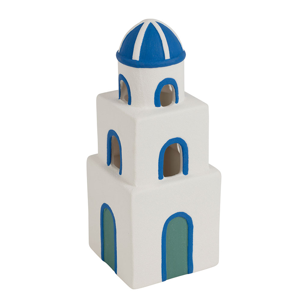 05 56 69 68 67-contact@fabriquedestyles.frDéco led bâtiment grec en porcelaine bleu et blanc - Greeka