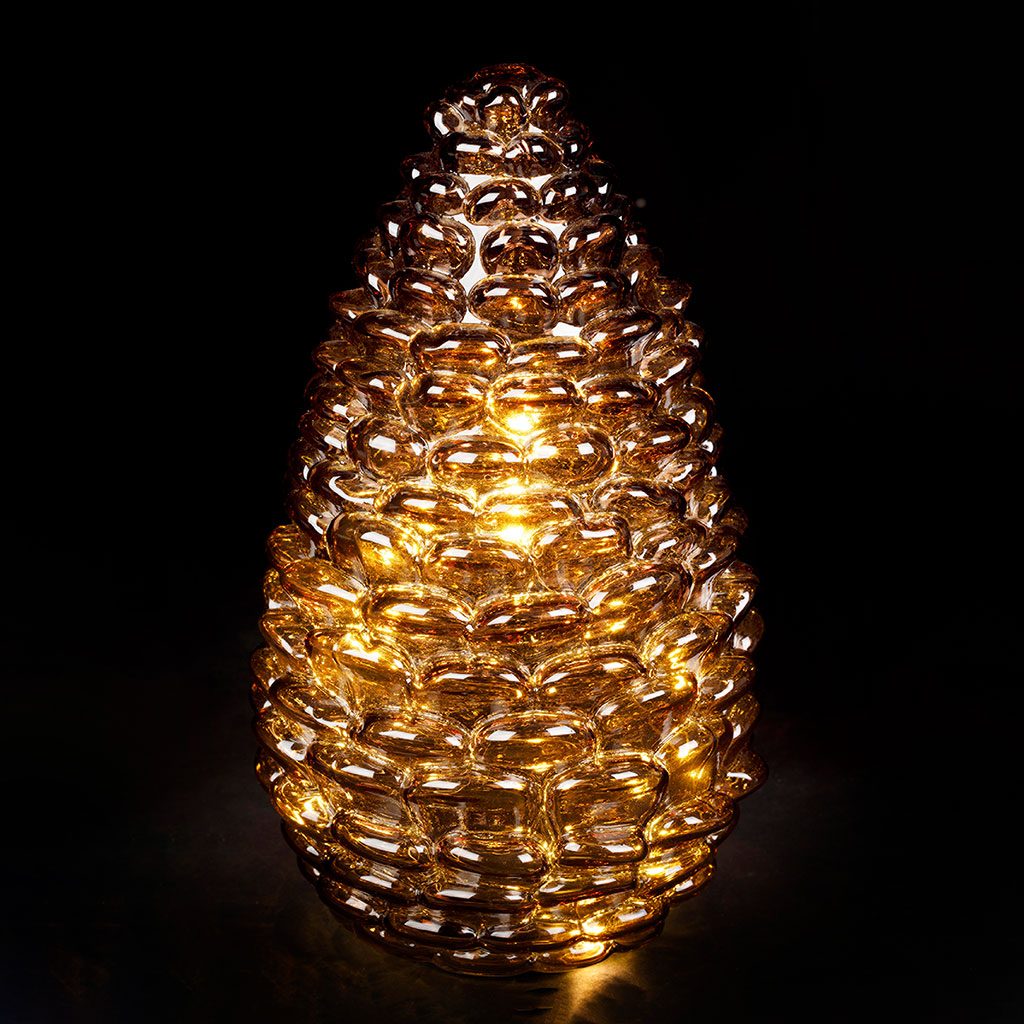 05 56 69 68 67-contact@fabriquedestyles.frDéco led pigne en verre brun h26cm - Automnal