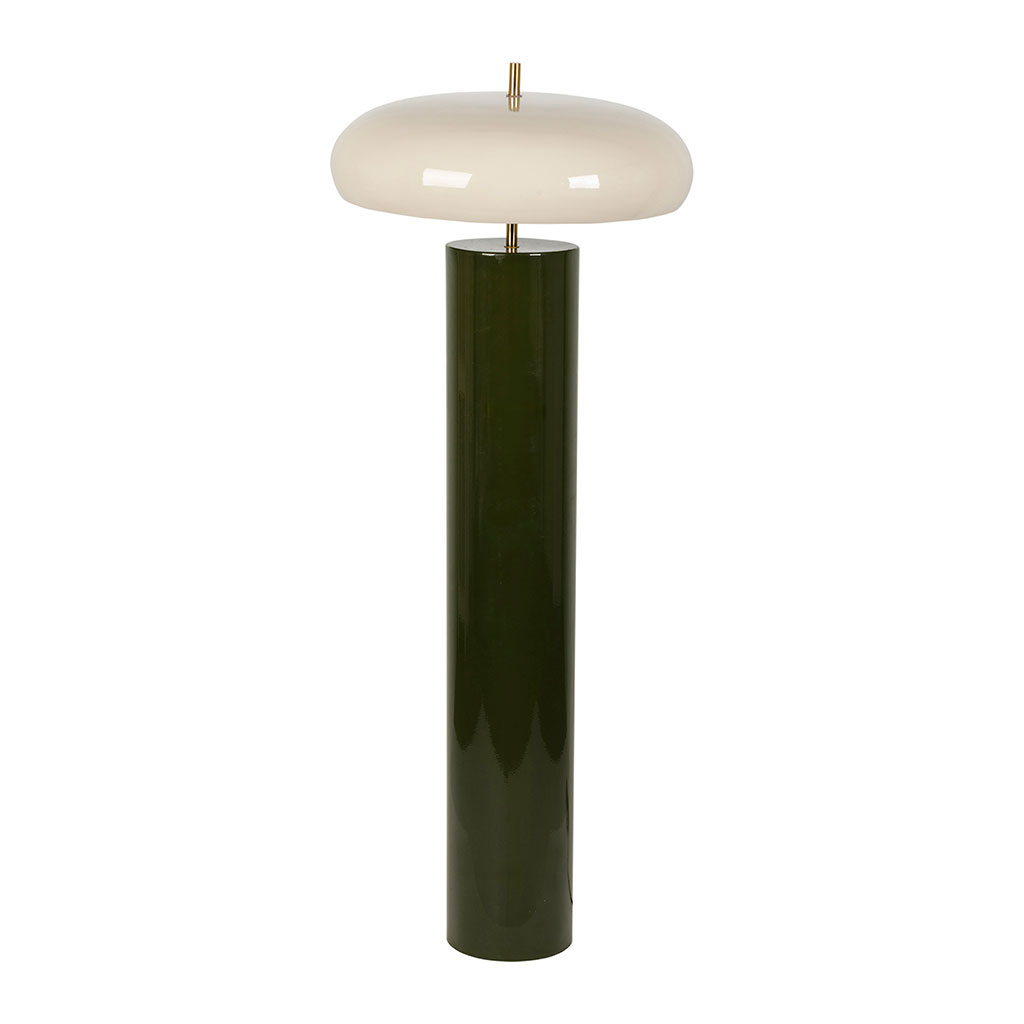 Le lampadaire champignon en fer kaki et écru s’impose comme une pièce maîtresse au design affirmé pour votre intérieur.