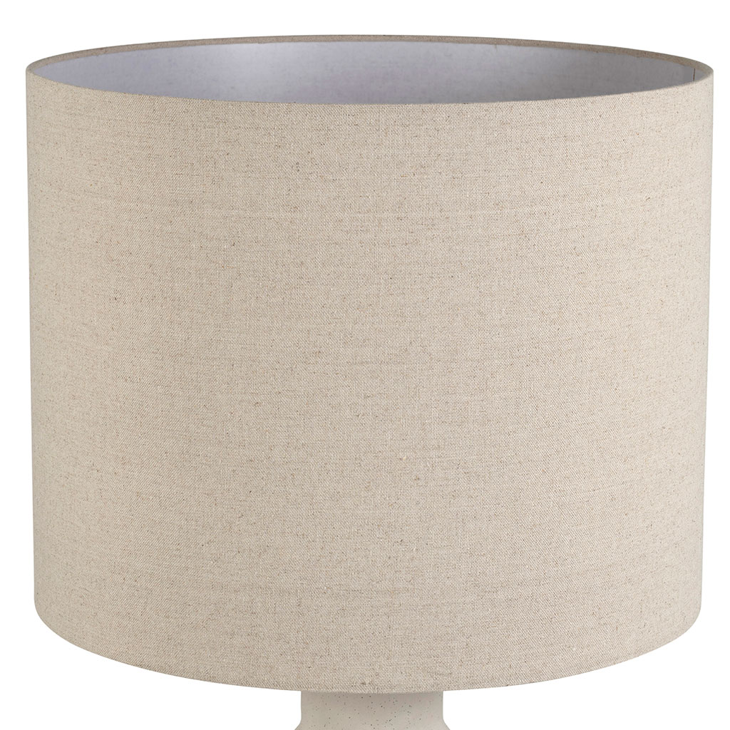 Ce modèle combine une base en céramique et un abat-jour en lin écru moucheté, créant ainsi un mélange harmonieux de matériaux qui plaira aux amateurs de design moderne et chaleureux.