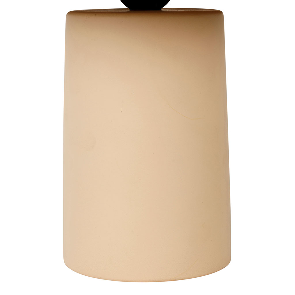L'abat-jour en forme de dôme repose sur un pied cylindrique large, offrant une stabilité parfaite et un équilibre visuel harmonieux.