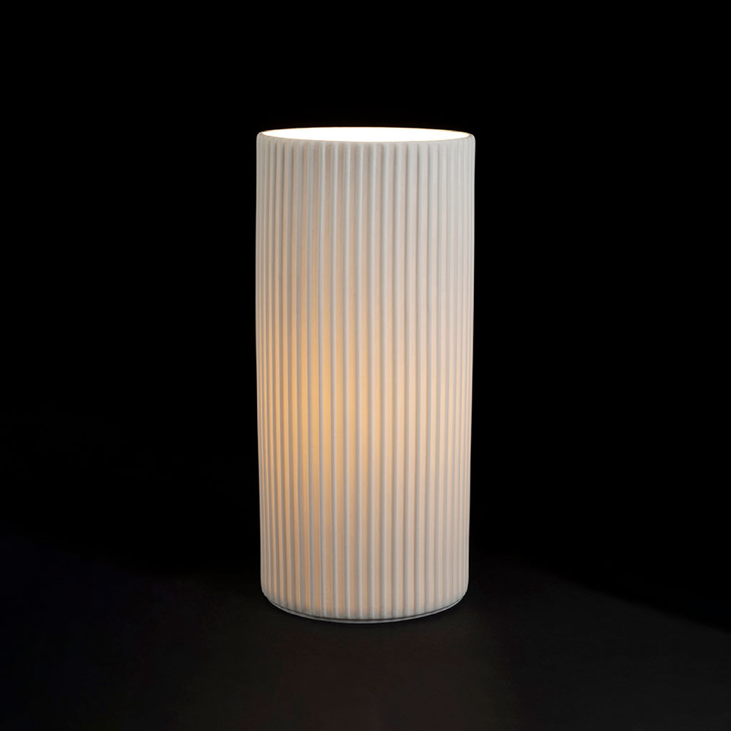 05 56 69 68 67-contact@fabriquedestyles.frLampe cylindre en porcelaine blanc h24cm E14 - Sweet Leaves