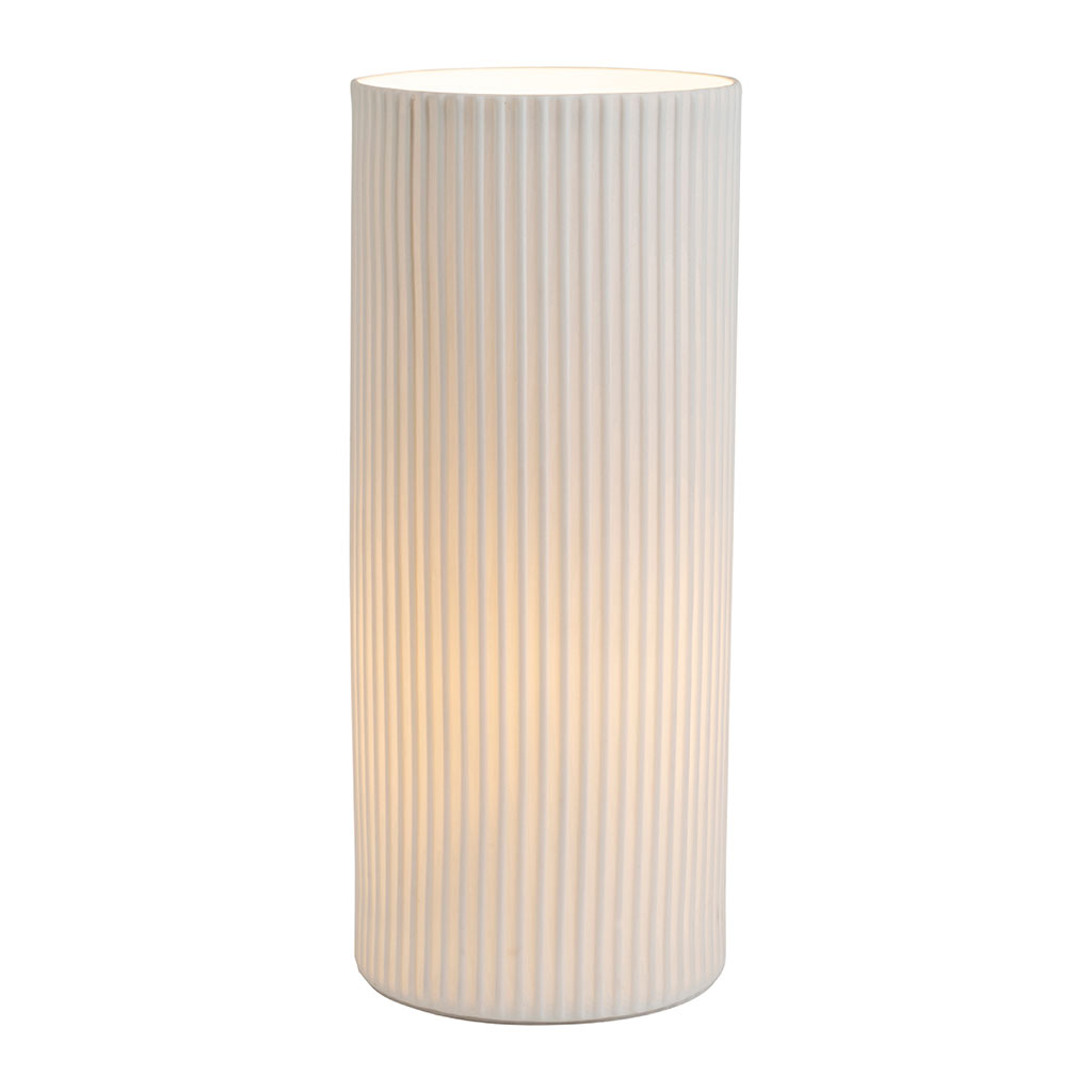 05 56 69 68 67-contact@fabriquedestyles.frLampe cylindre en porcelaine blanc h28cm E14 - Sweet Leaves