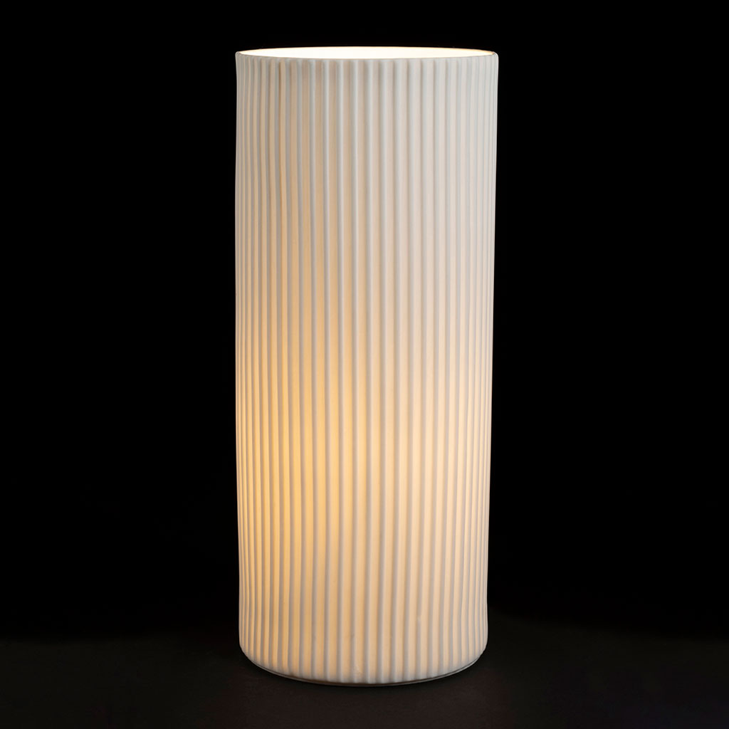 Avec sa forme cylindrique, cette lampe offre une diffusion de lumière homogène et apaisante.