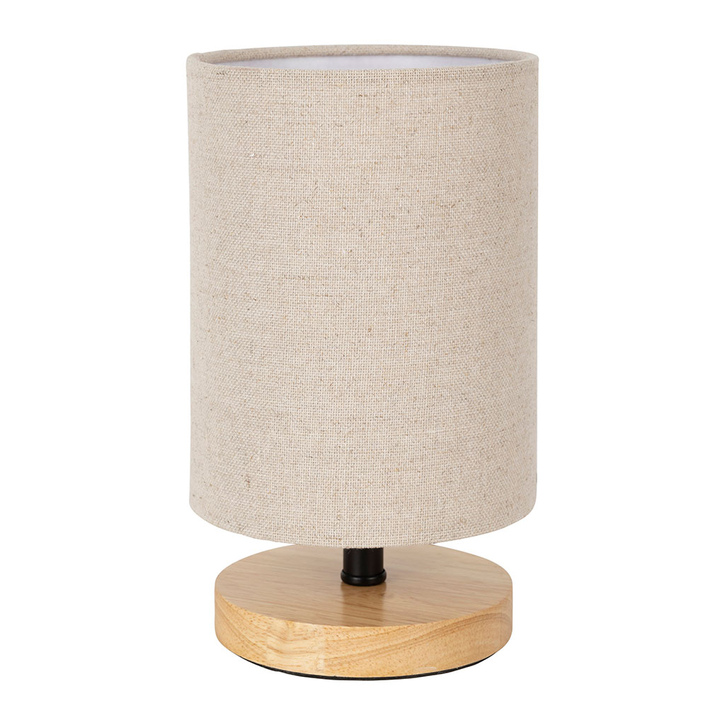 05 56 69 68 67-contact@fabriquedestyles.frLampe en bois d'hévéa et coton beige h24cm E14 - Filen