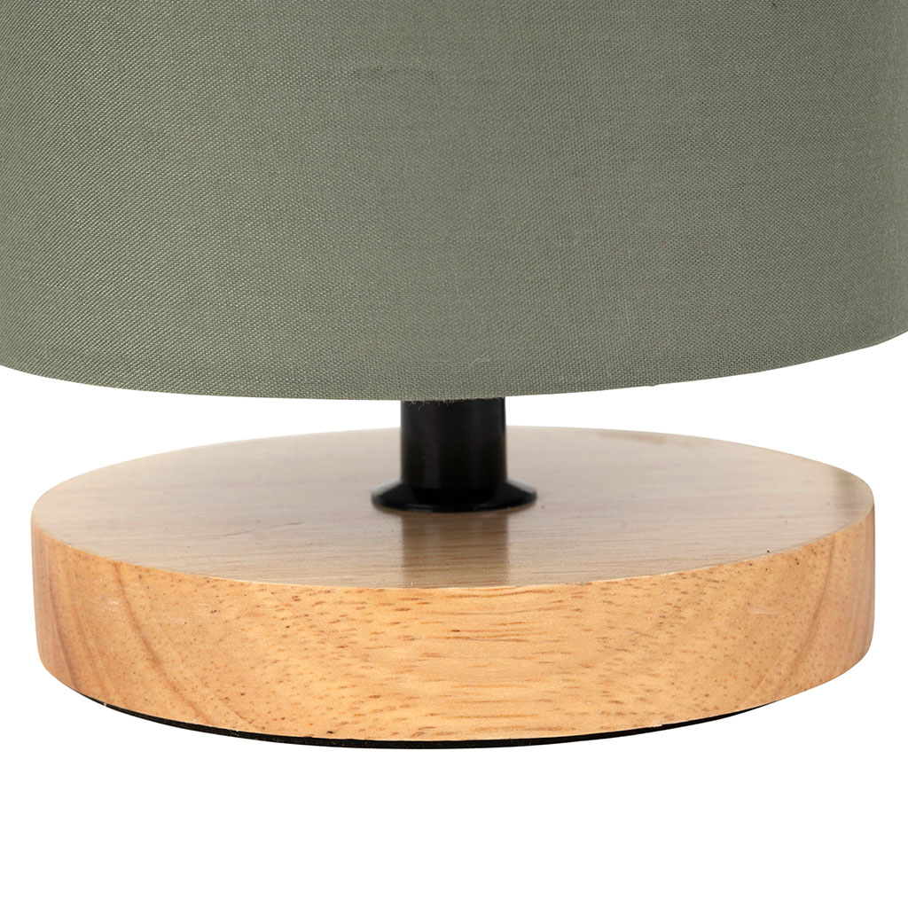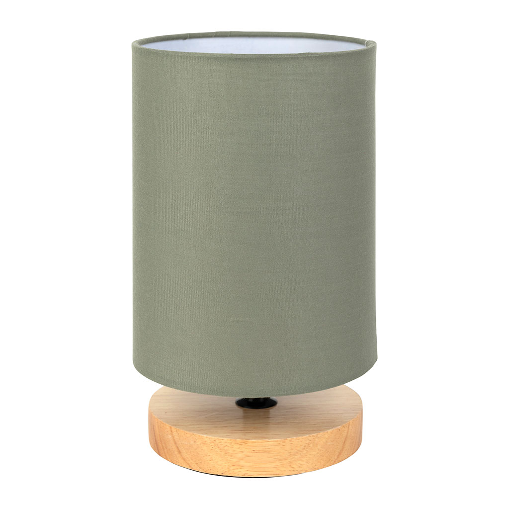 05 56 69 68 67-contact@fabriquedestyles.frLampe en bois d'hévéa et coton kaki h24cm E14 - Filen
