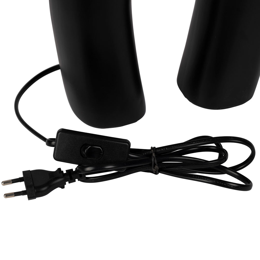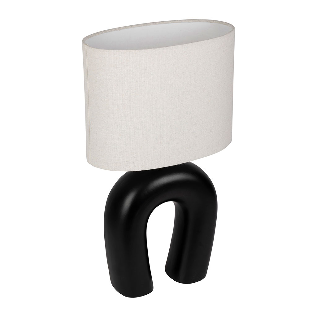 Ajoutez une ambiance chaleureuse et harmonieuse à votre espace de vie avec cette lampe en céramique et coton noir et écru.