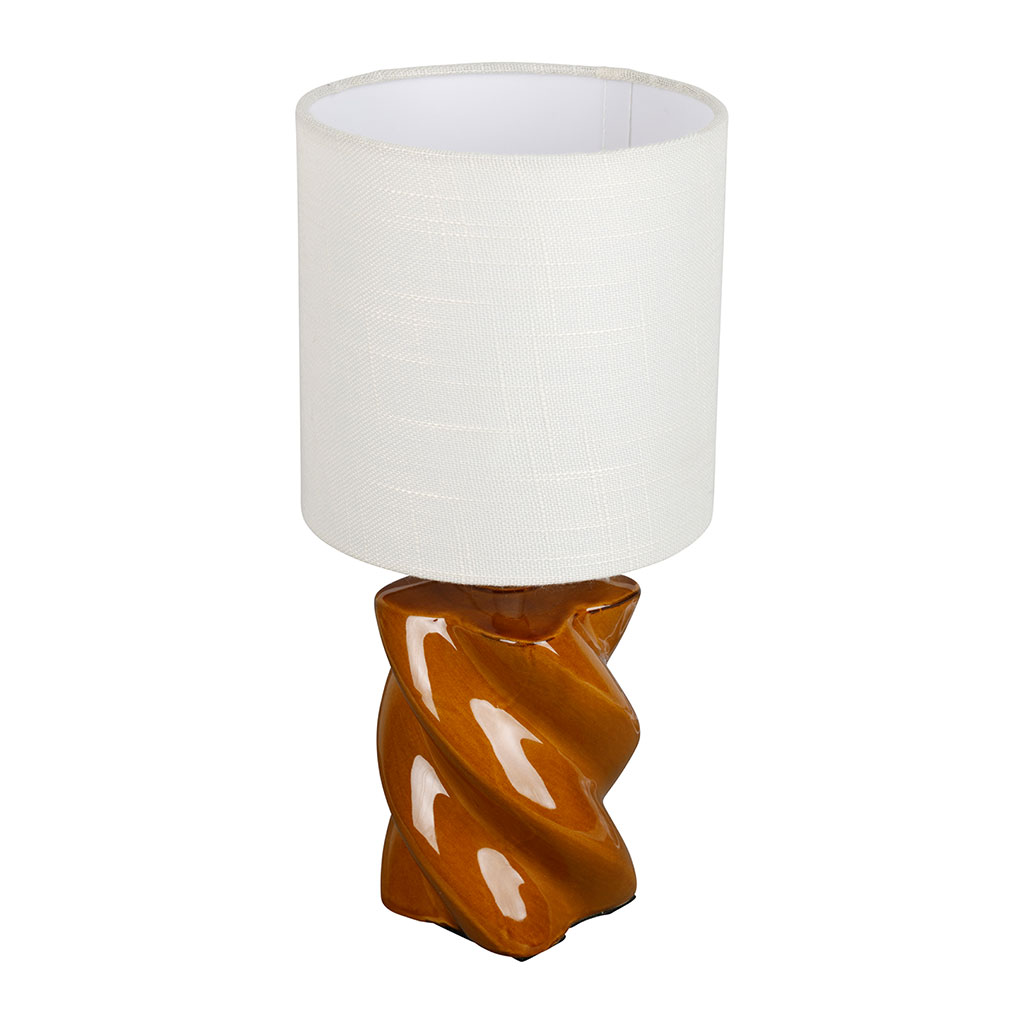 05 56 69 68 67-contact@fabriquedestyles.frLampe en lin et céramique camel h31cm E14 - Lumi