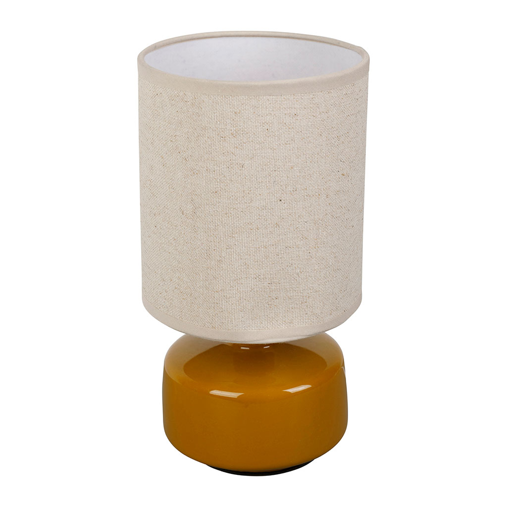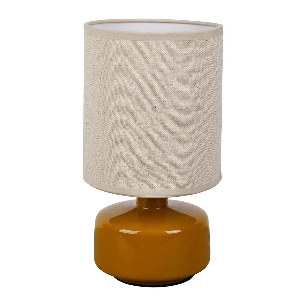 05 56 69 68 67-contact@fabriquedestyles.frLampe en lin et céramique curry h26cm E14 - Cyclio