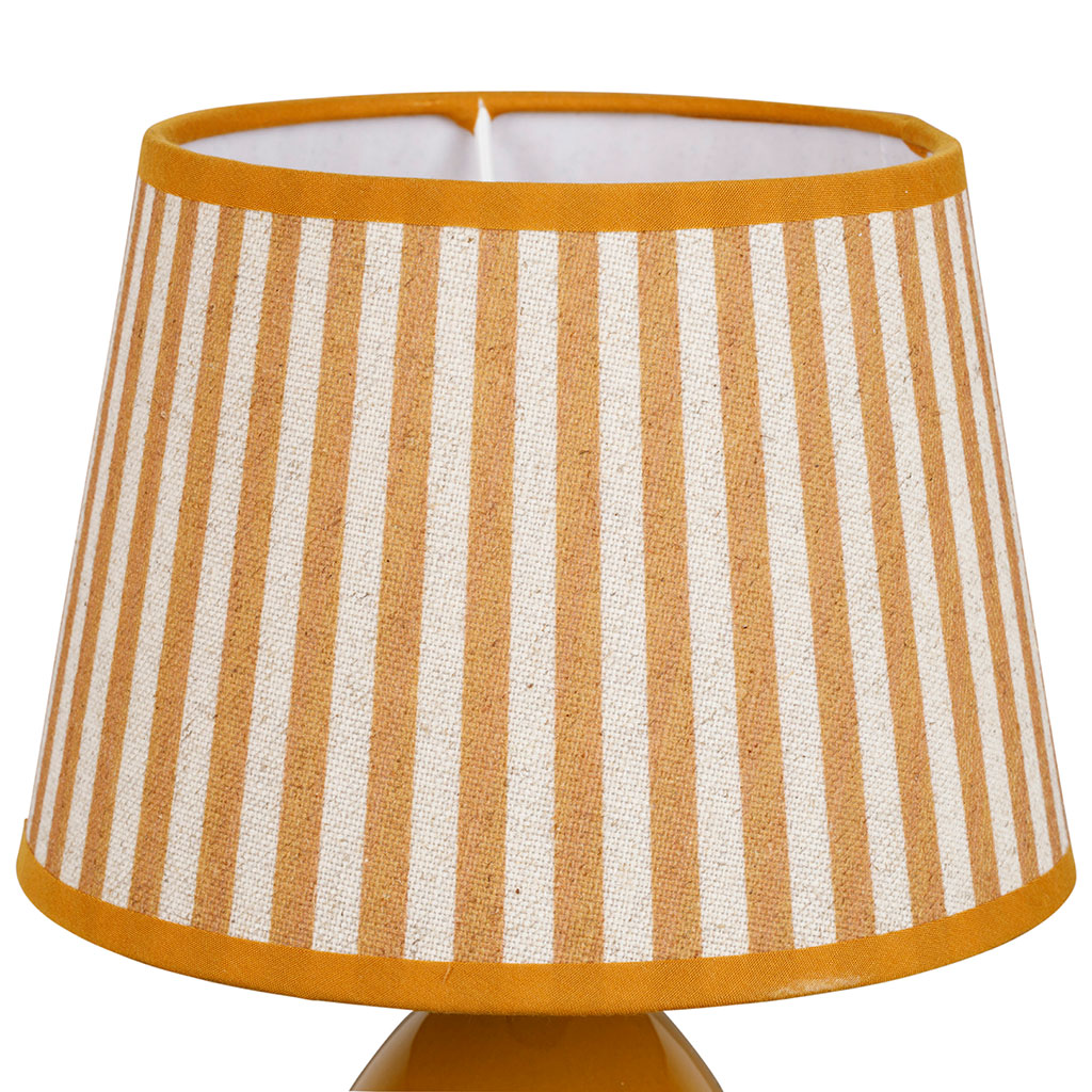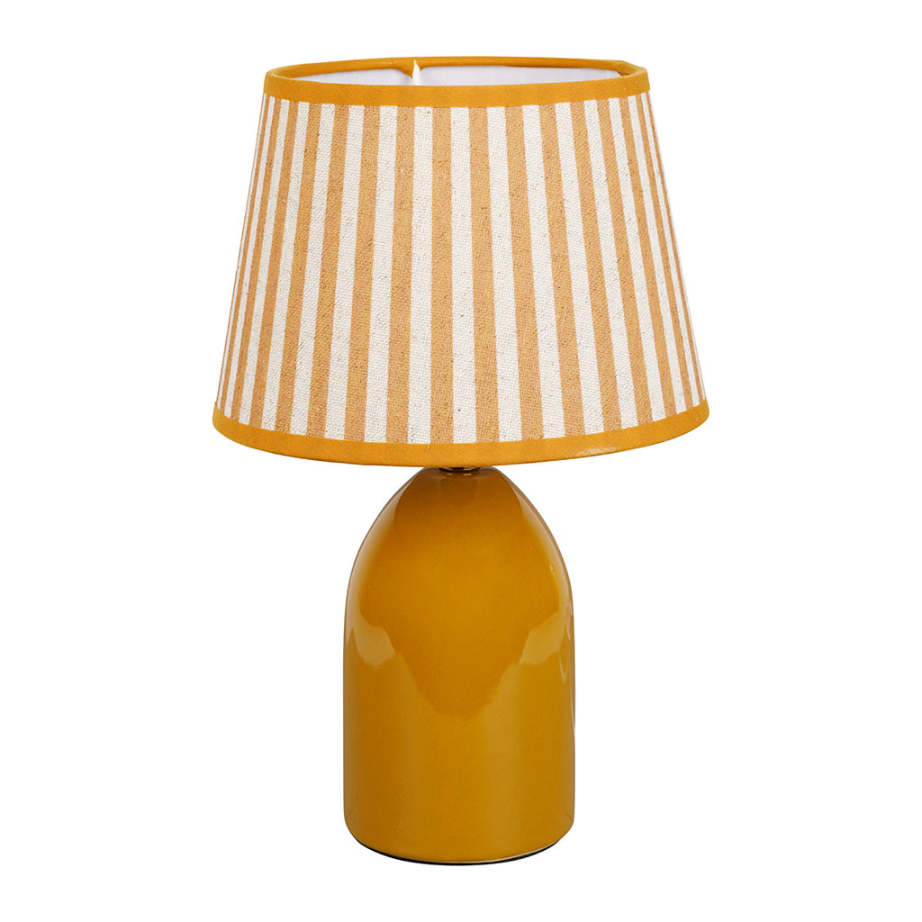 La lampe à poser Romancero se distingue par son pied galbé en céramique coloris moutarde, une teinte vibrante qui apporte une dose de soleil à votre décoration intérieure.