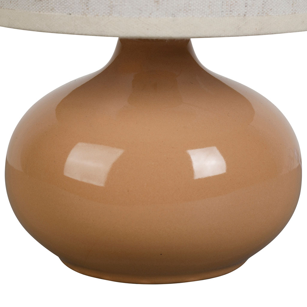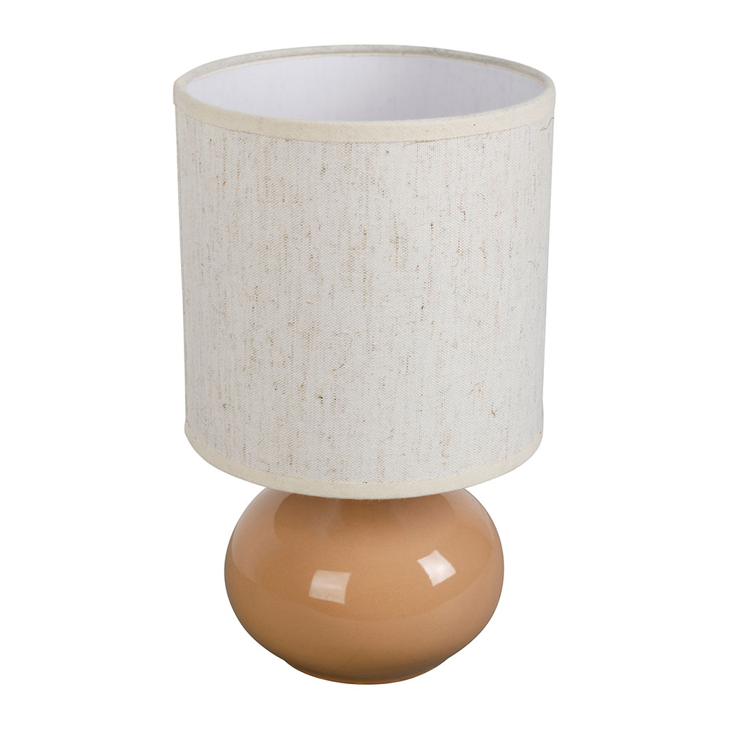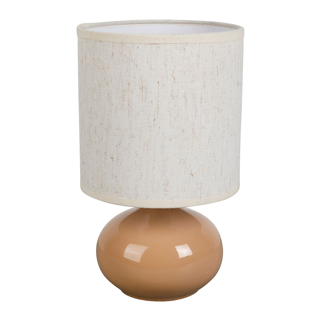 Sa finition en céramique nude se marie harmonieusement avec son abat-jour en lin, créant une ambiance douce et apaisante.