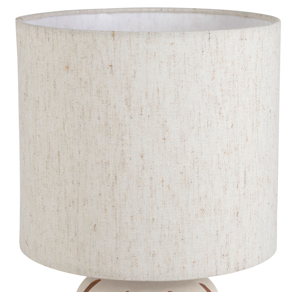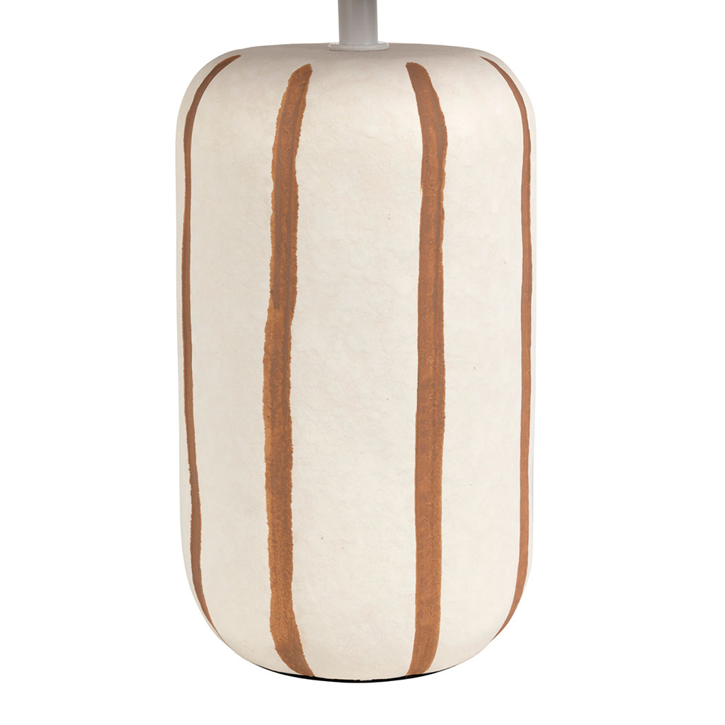 05 56 69 68 67-contact@fabriquedestyles.frLampe en lin et céramique rayée brun et blanc h40cm E27 - Paese