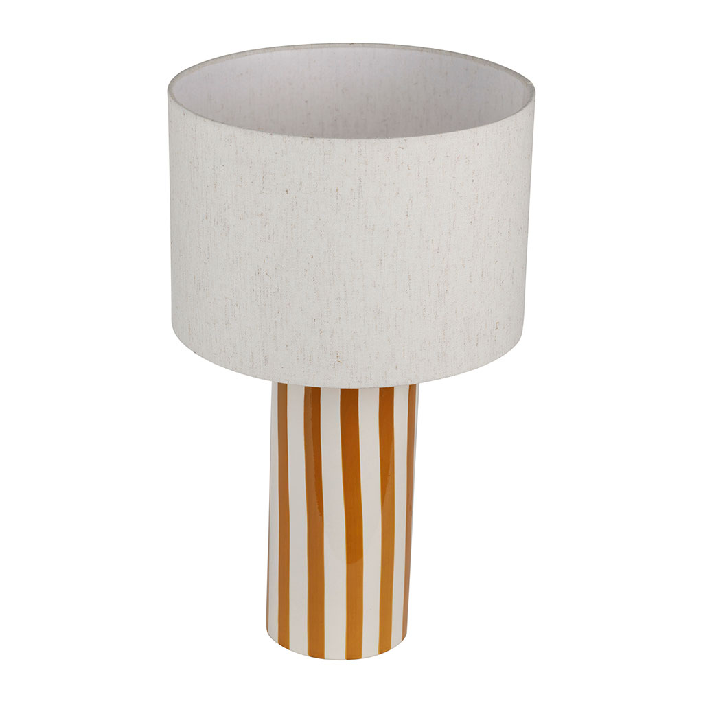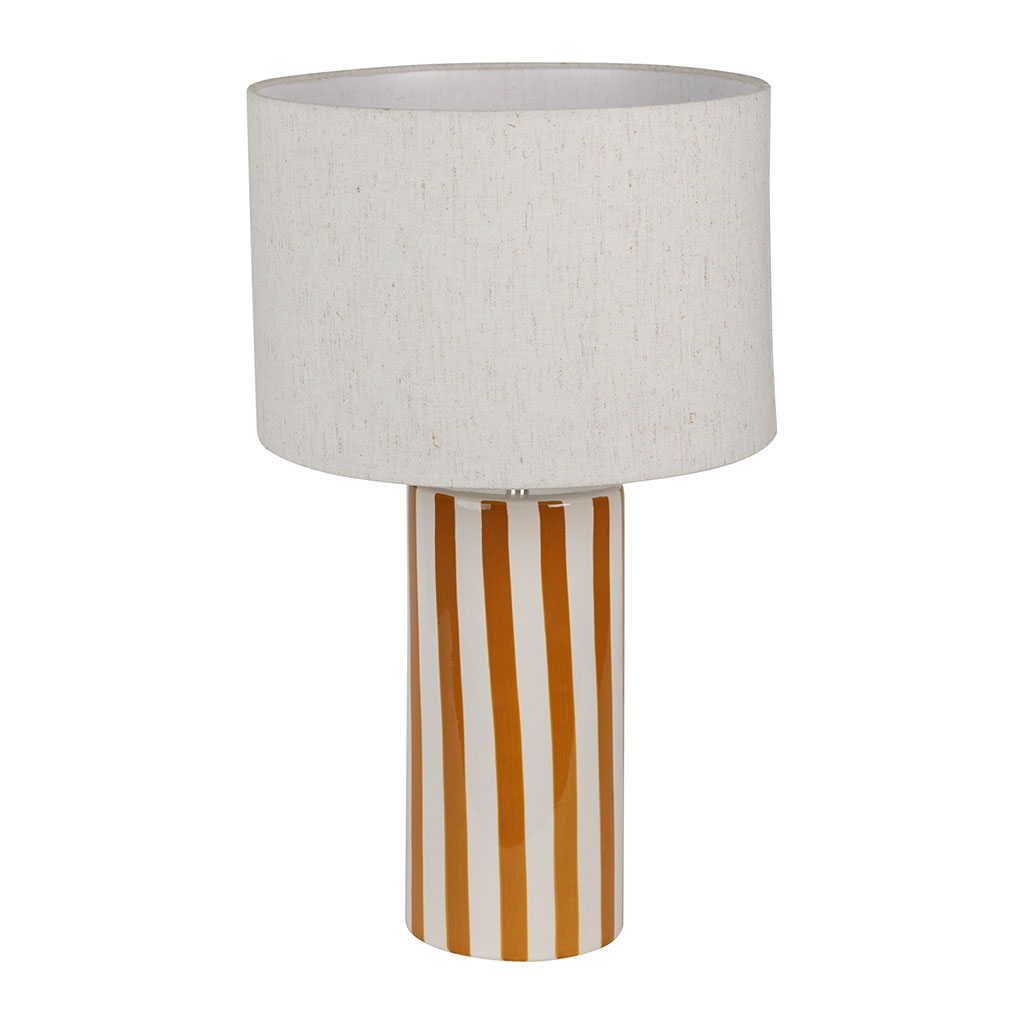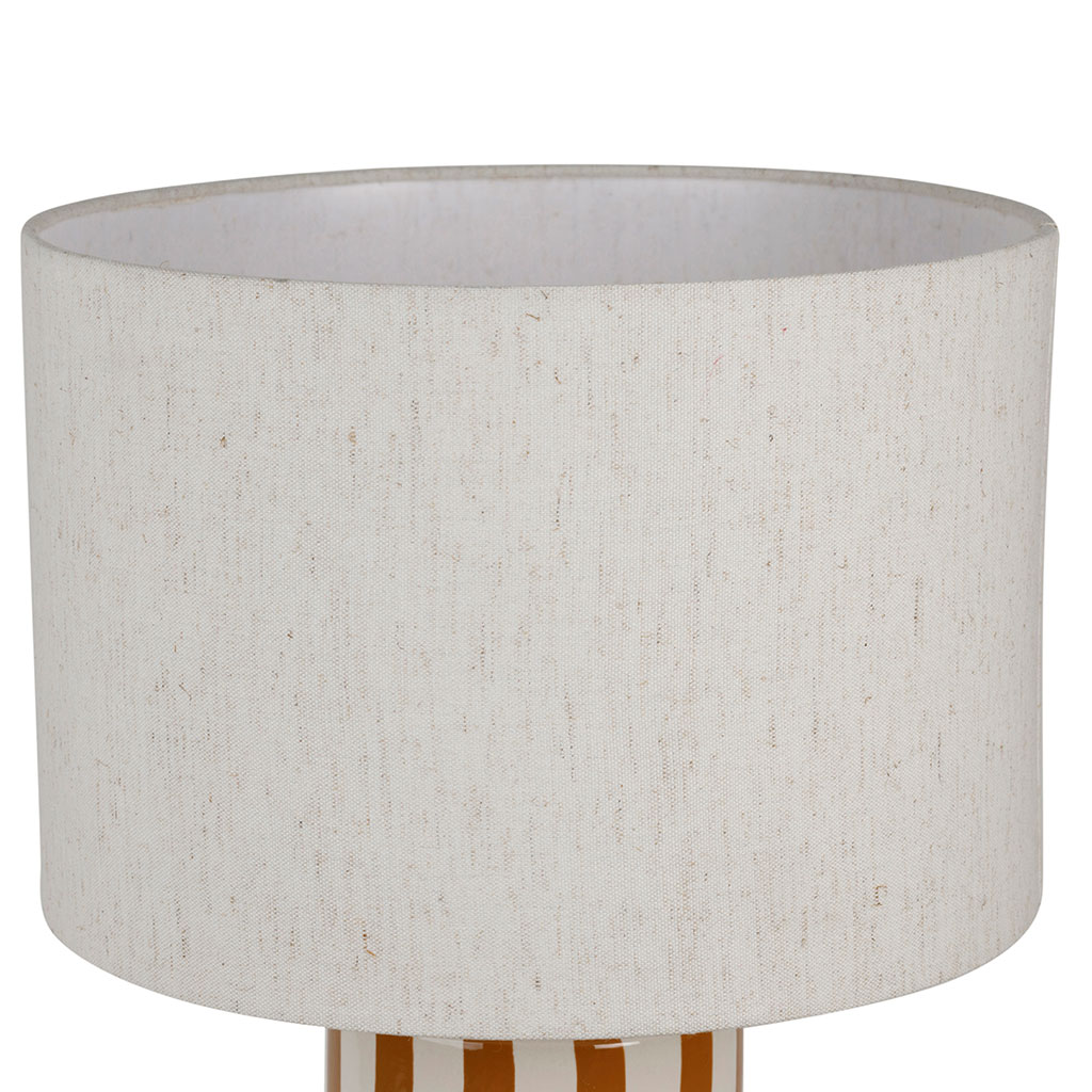 Avec sa hauteur de 47 cm, cette lampe possède des rayures subtilement équilibrées dans des tons écru et brun, apportant une touche chaleureuse et accueillante à votre intérieur.