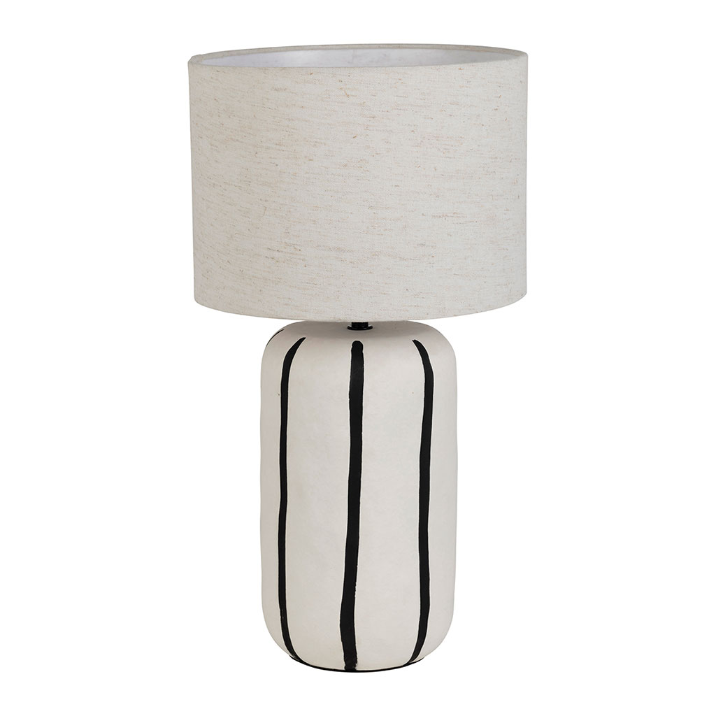 05 56 69 68 67-contact@fabriquedestyles.frLampe en lin et céramique rayée noir et écru h46cm E27 - Paese