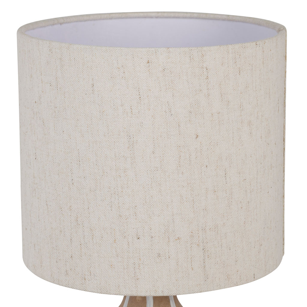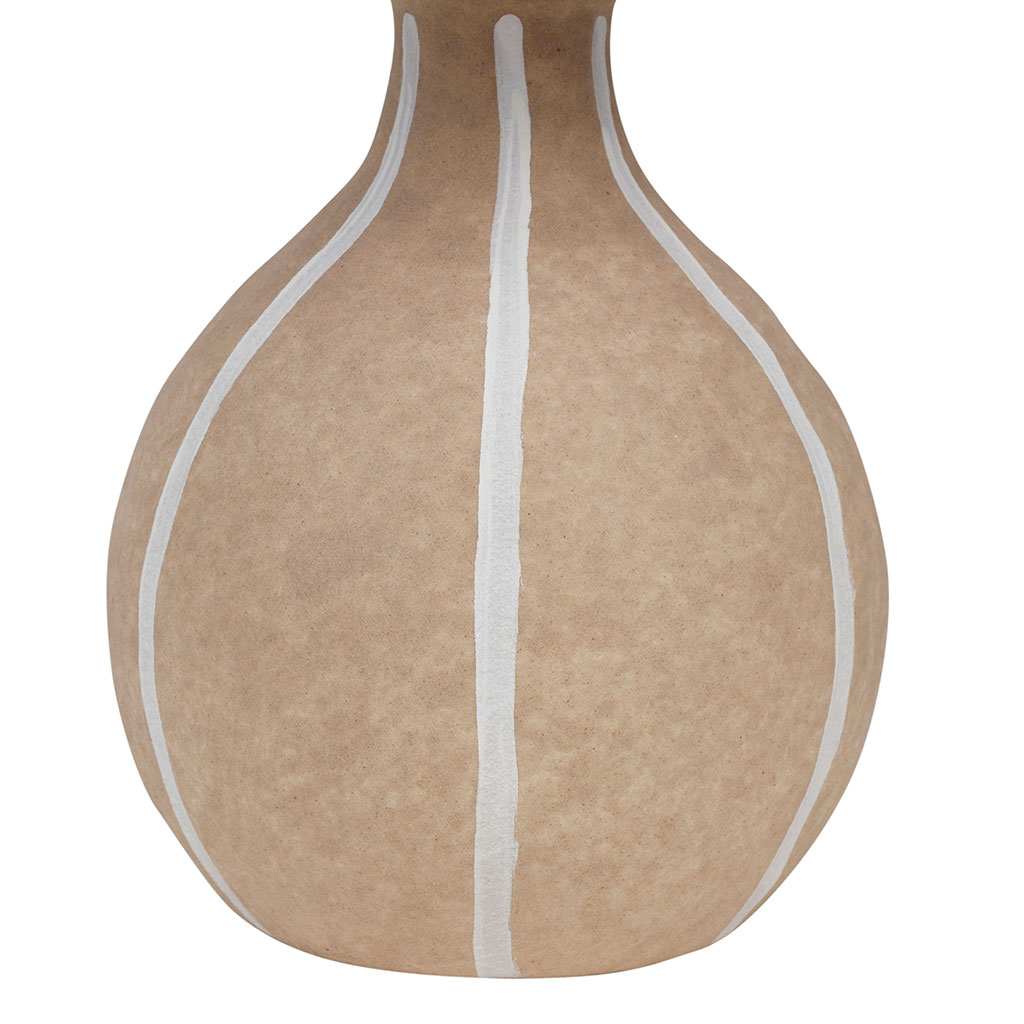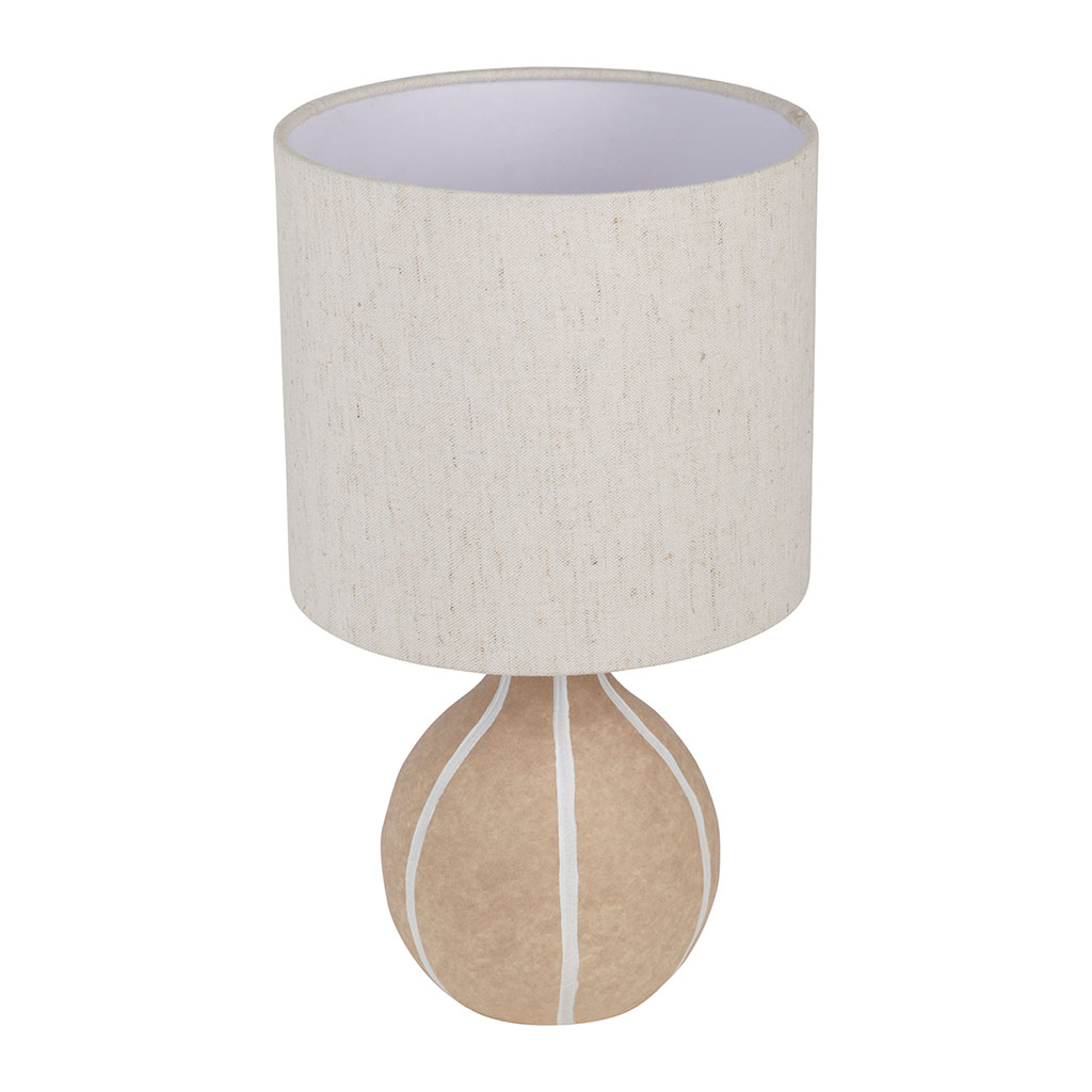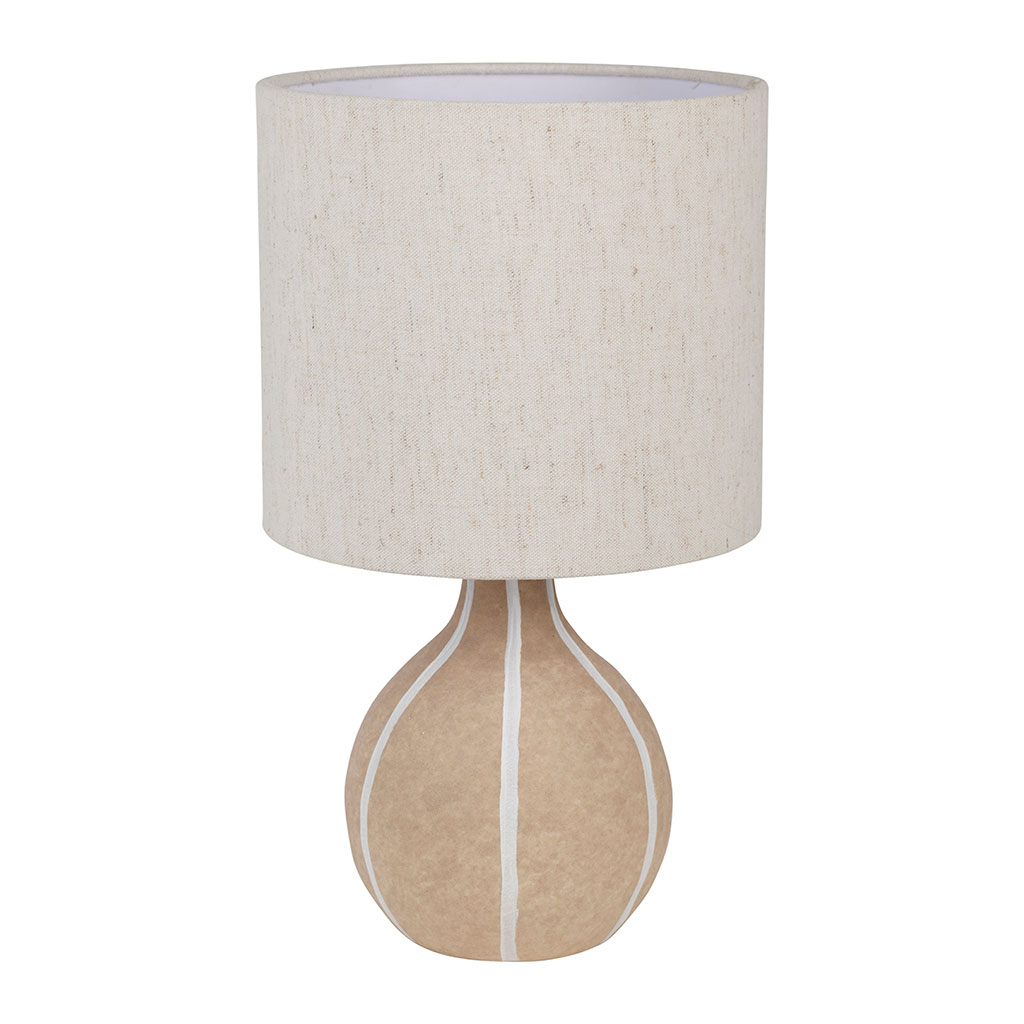 05 56 69 68 67-contact@fabriquedestyles.frLampe en lin et céramique rayée nude et écru h32cm E14 - Paese