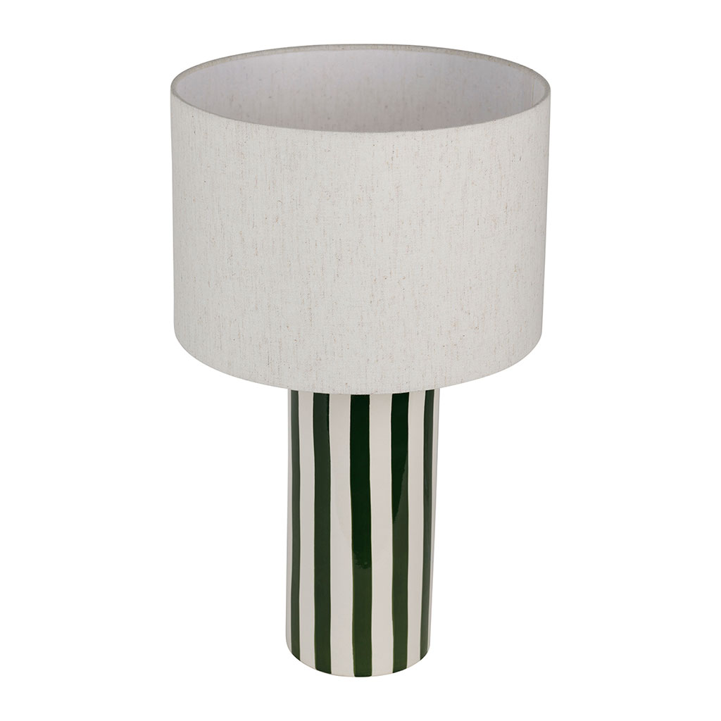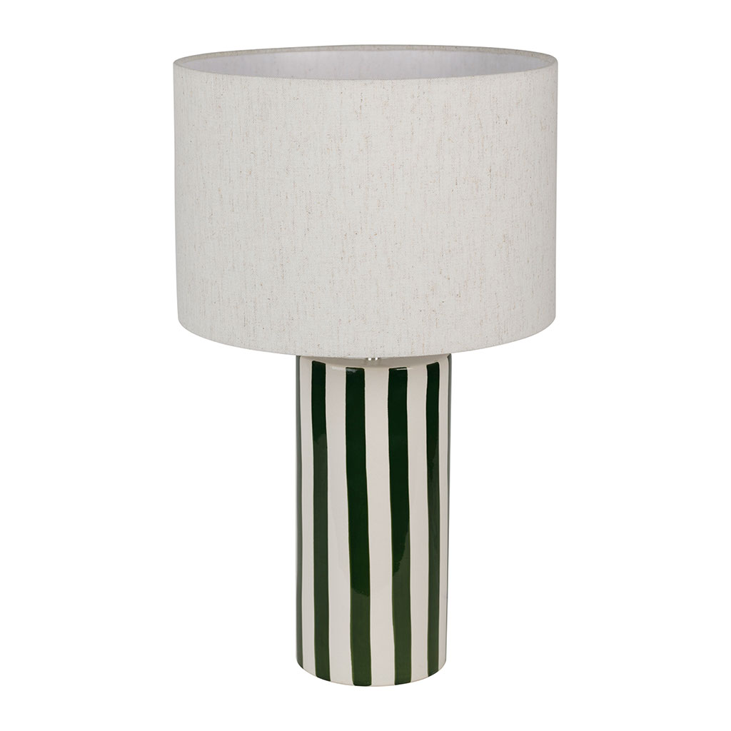 Ajoutez une touche de chaleur naturelle à votre intérieur avec cette magnifique lampe en céramique rayée écru et vert, atteignant une hauteur de 47 cm.