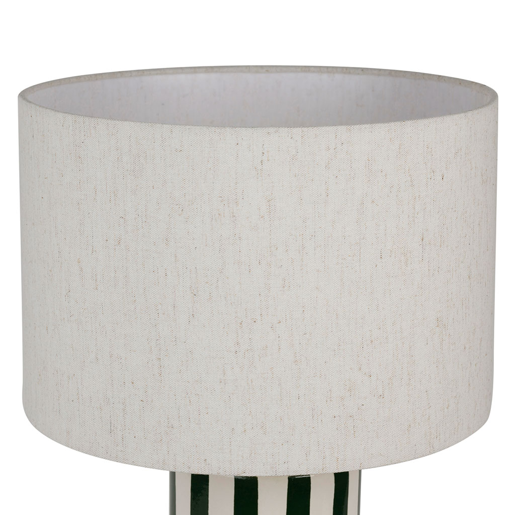 05 56 69 68 67-contact@fabriquedestyles.frLampe en lin et céramique rayée vert et écru h47cm E27 - Medi