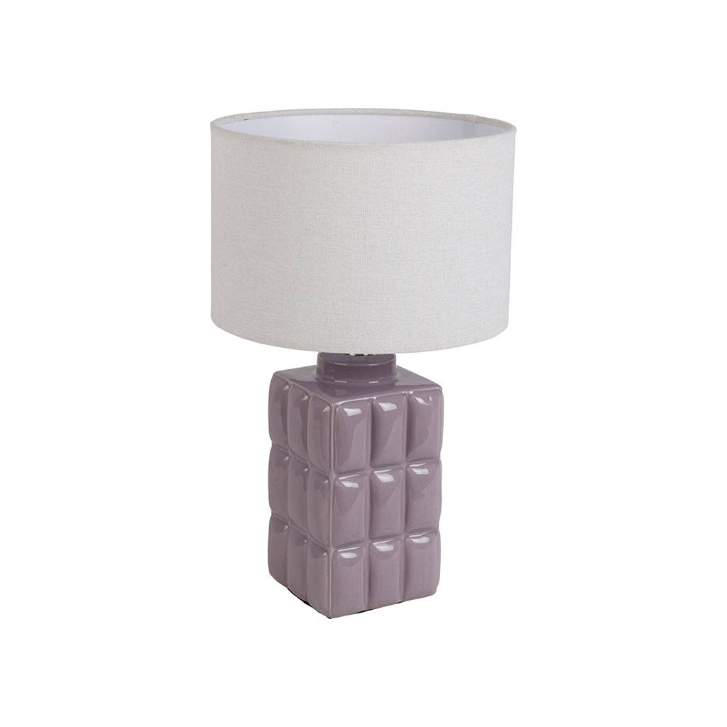 Illuminez votre espace avec charme grâce à cette lampe en céramique et lin violet de 35 cm de hauteur.