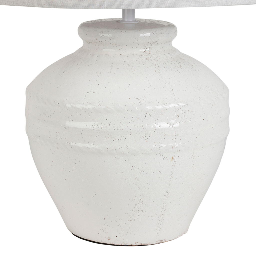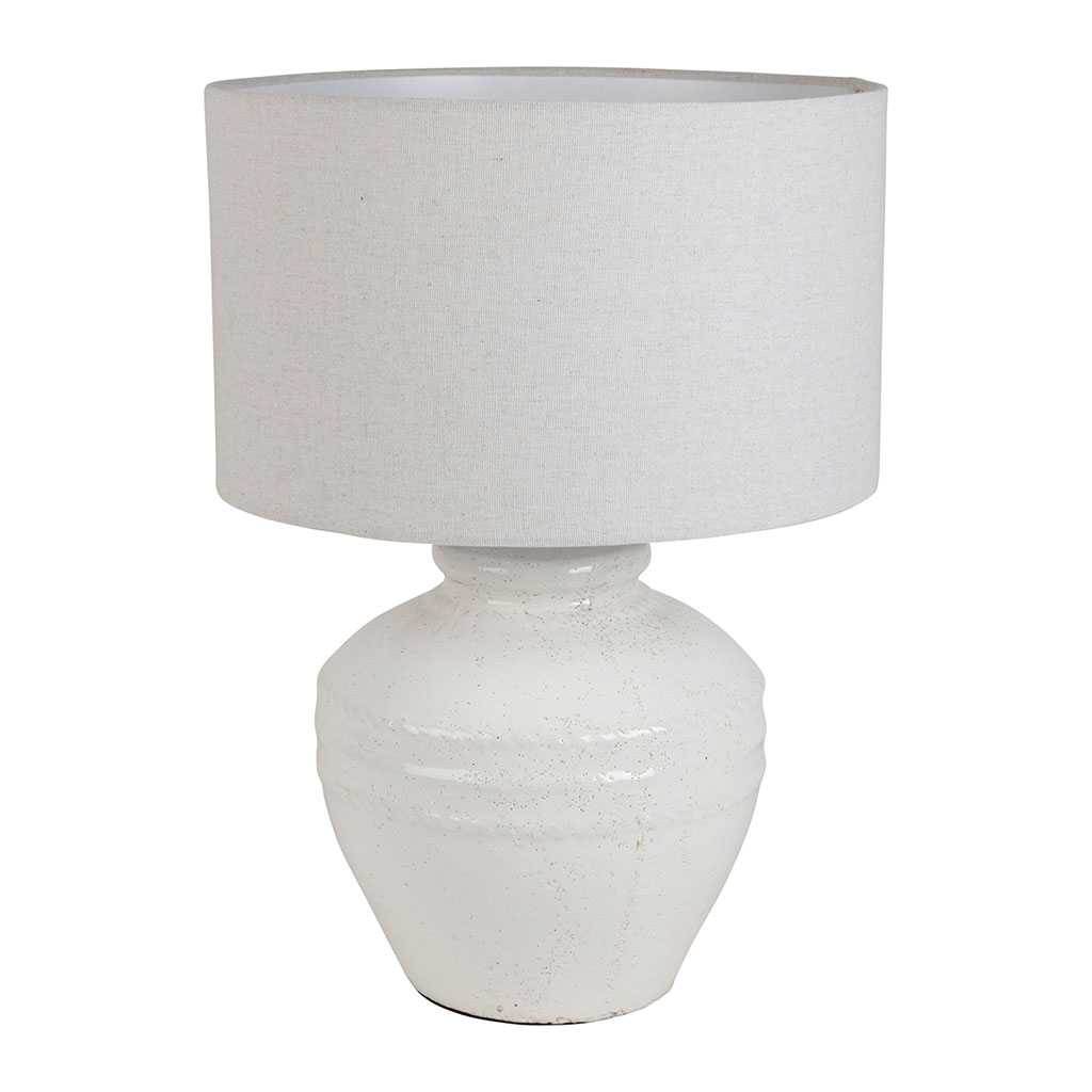 05 56 69 68 67-contact@fabriquedestyles.frLampe en lin et terre cuite blanc h48cm E27 - Tahra