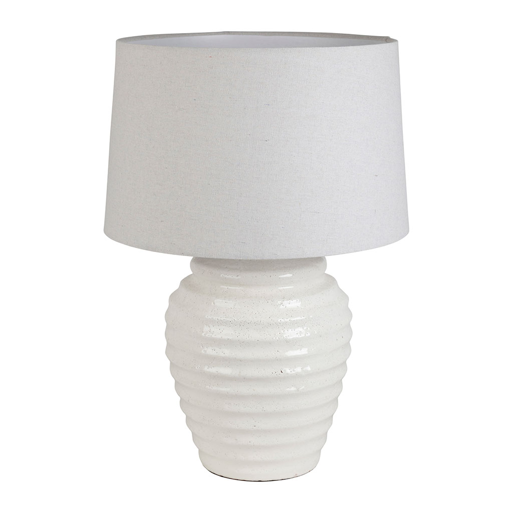 Découvrez la magie d'une ambiance chaleureuse avec cette superbe lampe en terre cuite et lin blanc.