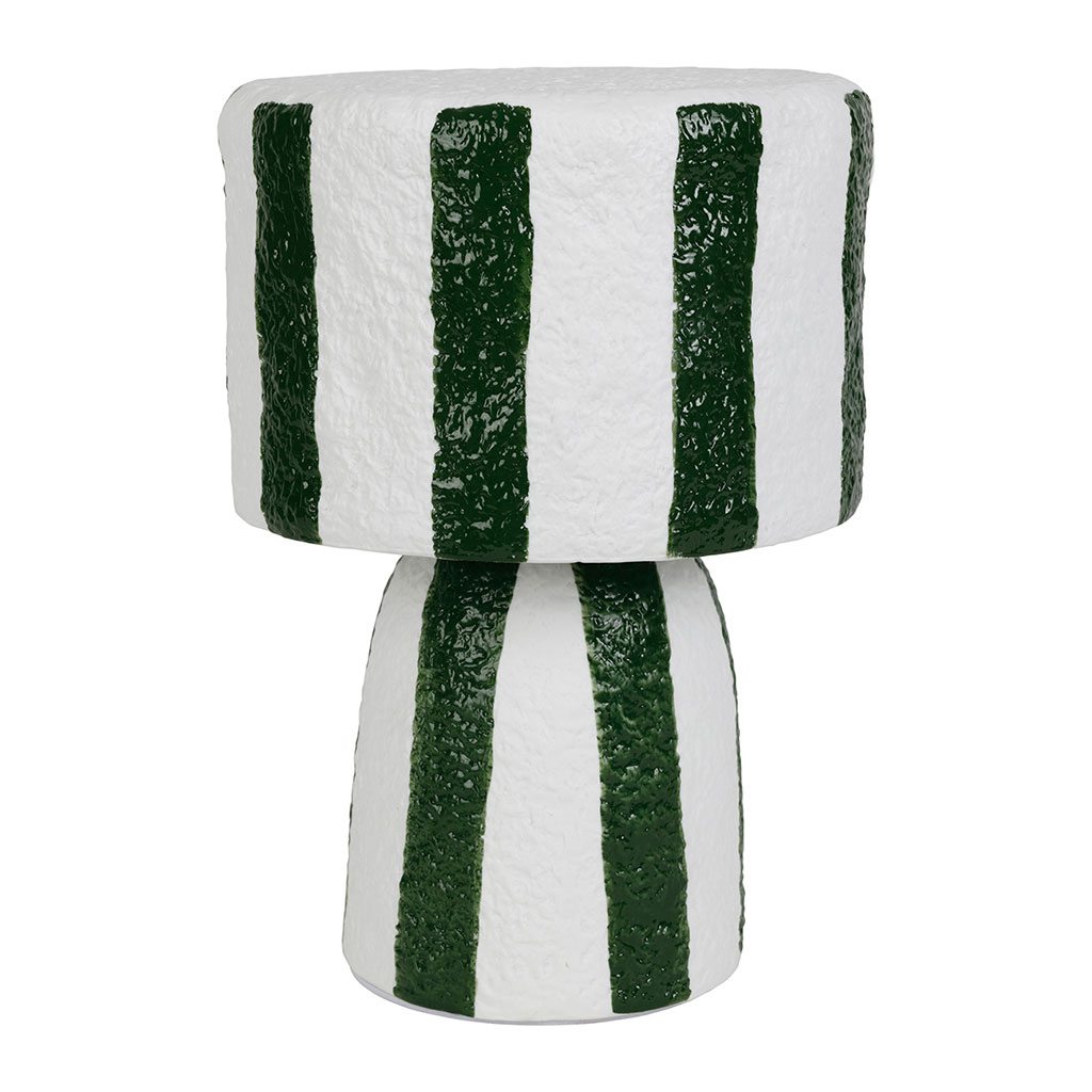05 56 69 68 67-contact@fabriquedestyles.frLampe en porcelaine rayée émeraude et blanc h27cm G9 - Alaria