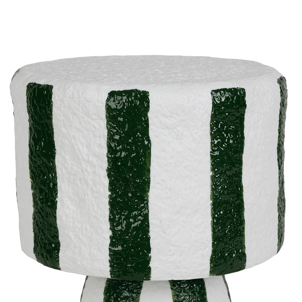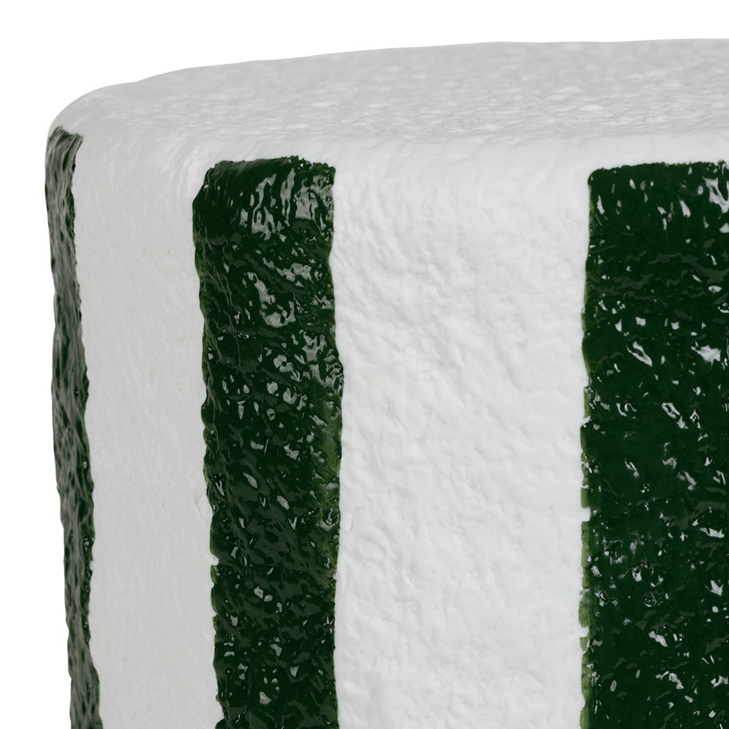 Idéale pour ajouter une ambiance chaleureuse à votre salon, votre chambre ou même votre bureau, cet accessoire de décoration se distingue par son motif rayé en émeraude et blanc, qui attire le regard et inspire.