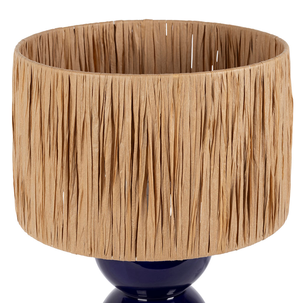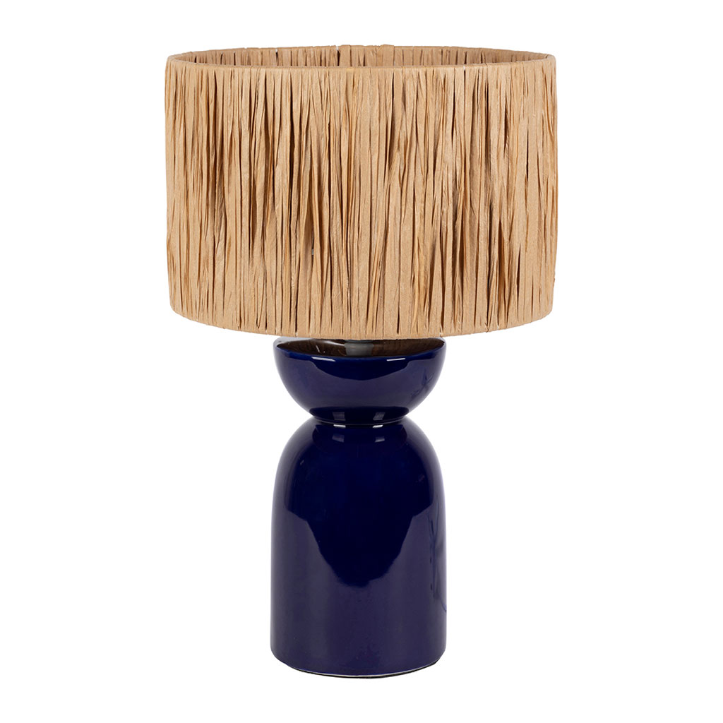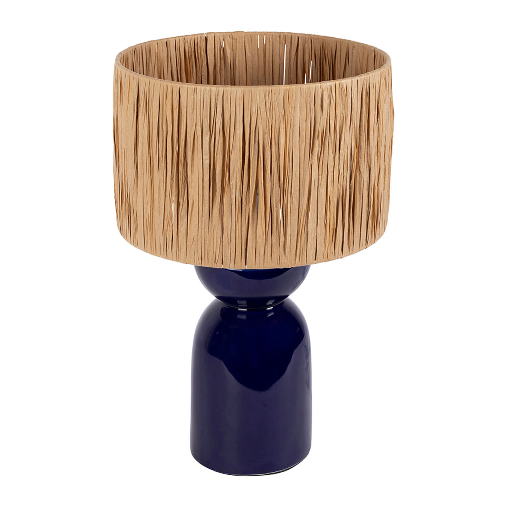 05 56 69 68 67-contact@fabriquedestyles.frLampe en raphia et céramique indigo h38cm E14 - Palma