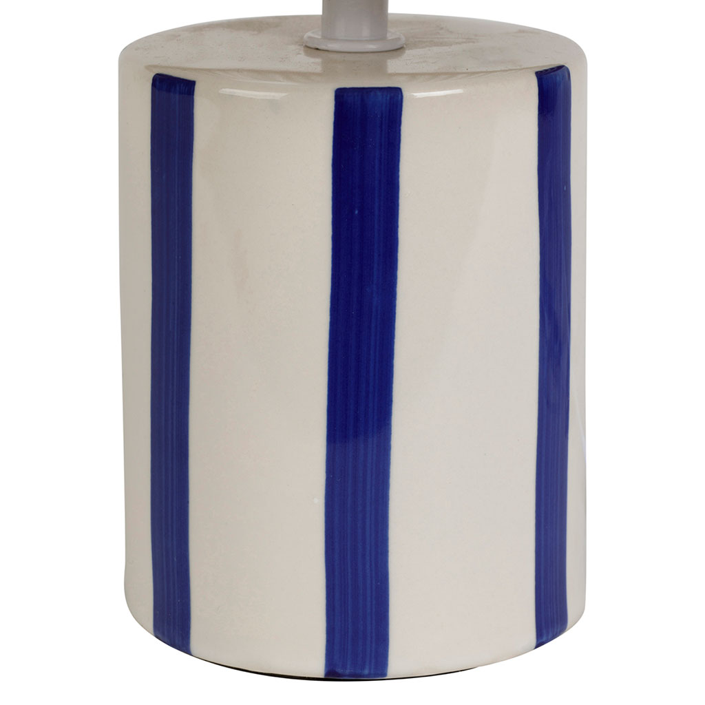 Illuminez votre intérieur avec style grâce à cette lampe en céramique aux rayures blanches et indigo.