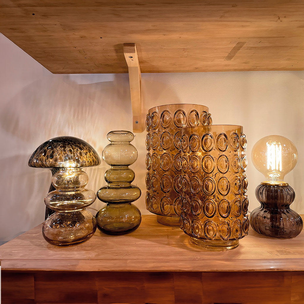 La transparence teintée du verre crée un joli jeu de lumière, même éteinte.
