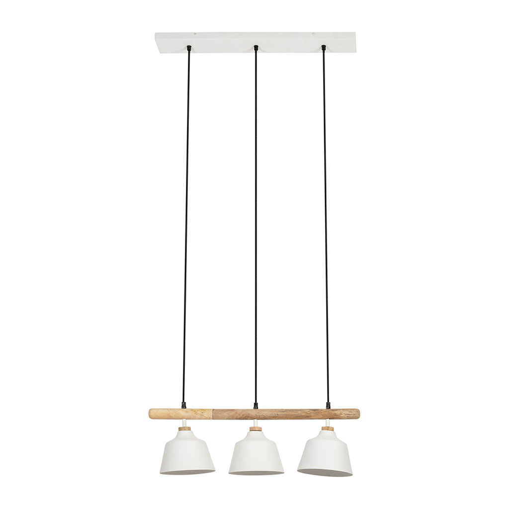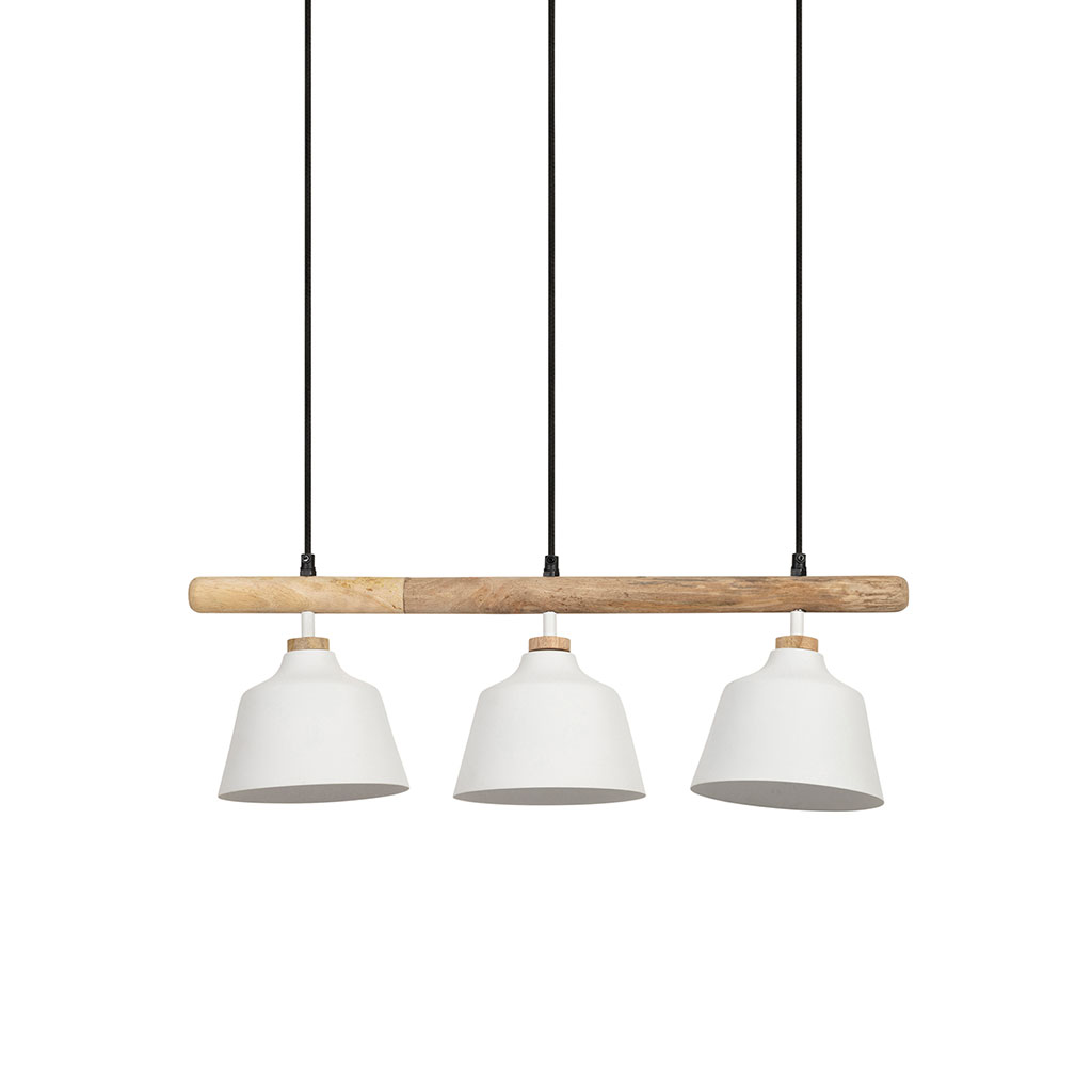 Transformez votre intérieur avec notre suspension triple lampes en fer et manguier blanc de 120 cm - Ferese.