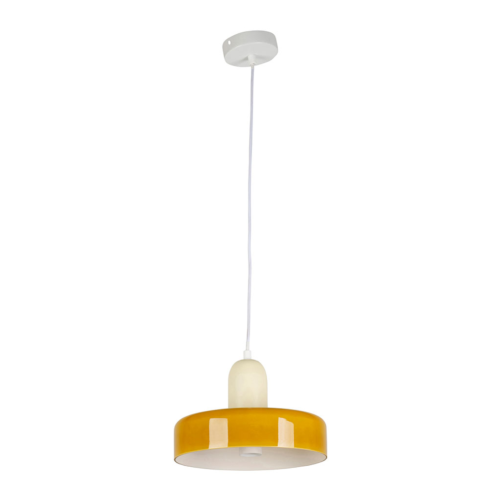 05 56 69 68 67-contact@fabriquedestyles.frSuspension en fer jaune et écru d25cm E27 - Atelier