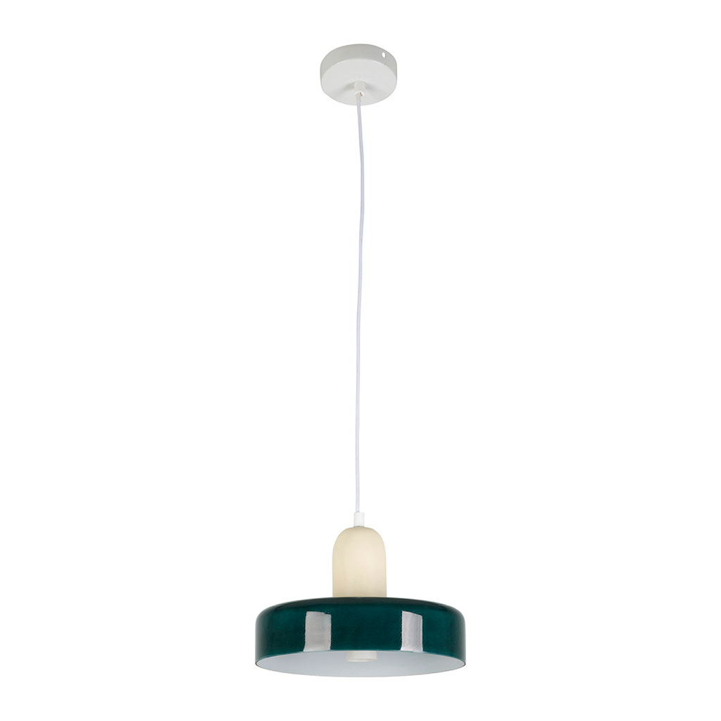 Minimaliste mais pleine de personnalité, la suspension Atelier mise sur un duo de couleurs intemporelles : vert foncé intense et écru mat.