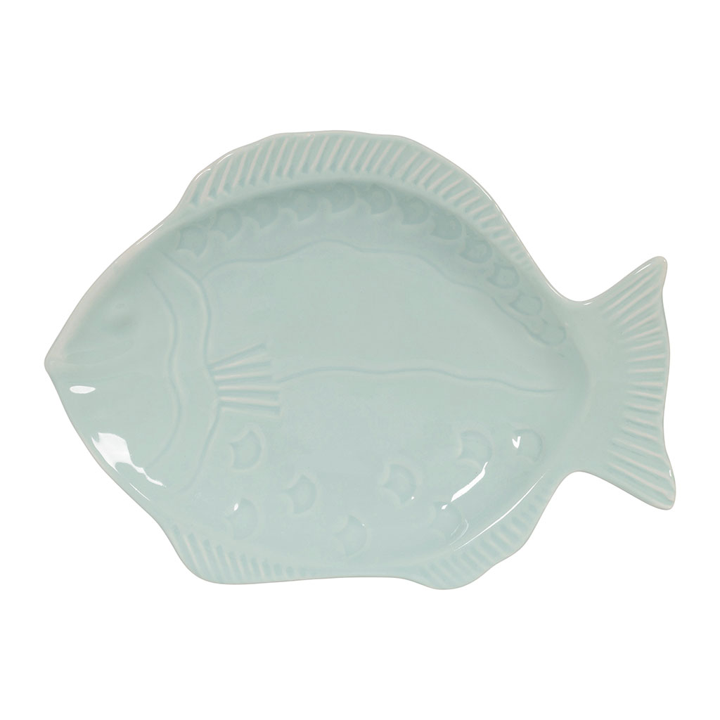 Plat poisson en faïence vert d'eau 33x25cm - Poisson